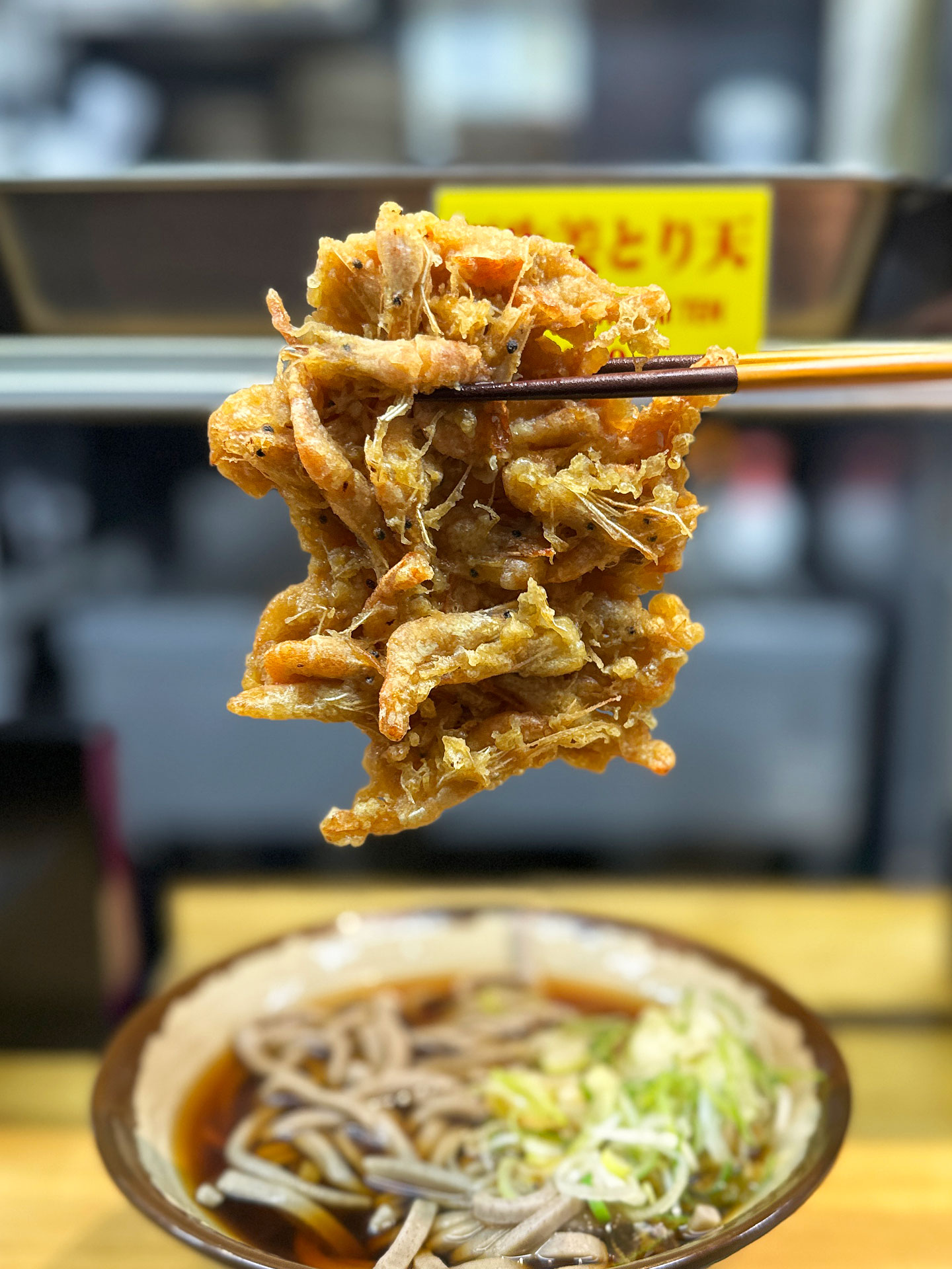 あみ天はないが小えびかき揚げはある。小岩ギャルとソフレになる野望を抱きつつもドラマは起こらずソロ蕎麦。