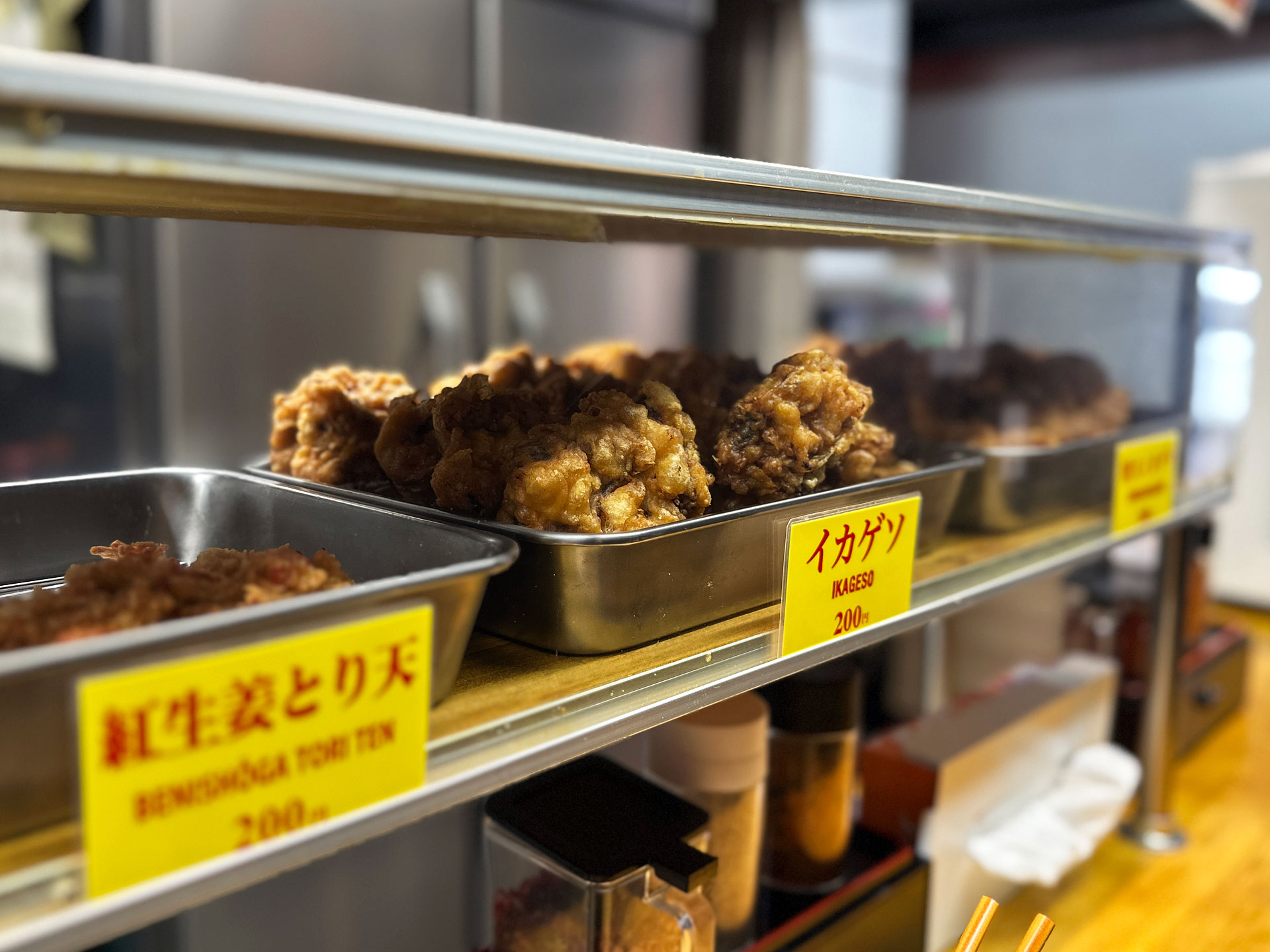 宵越しの〆のため朝6時から開いている中央通りの立ち食いそば屋「芽衣や(めいや)」へ。