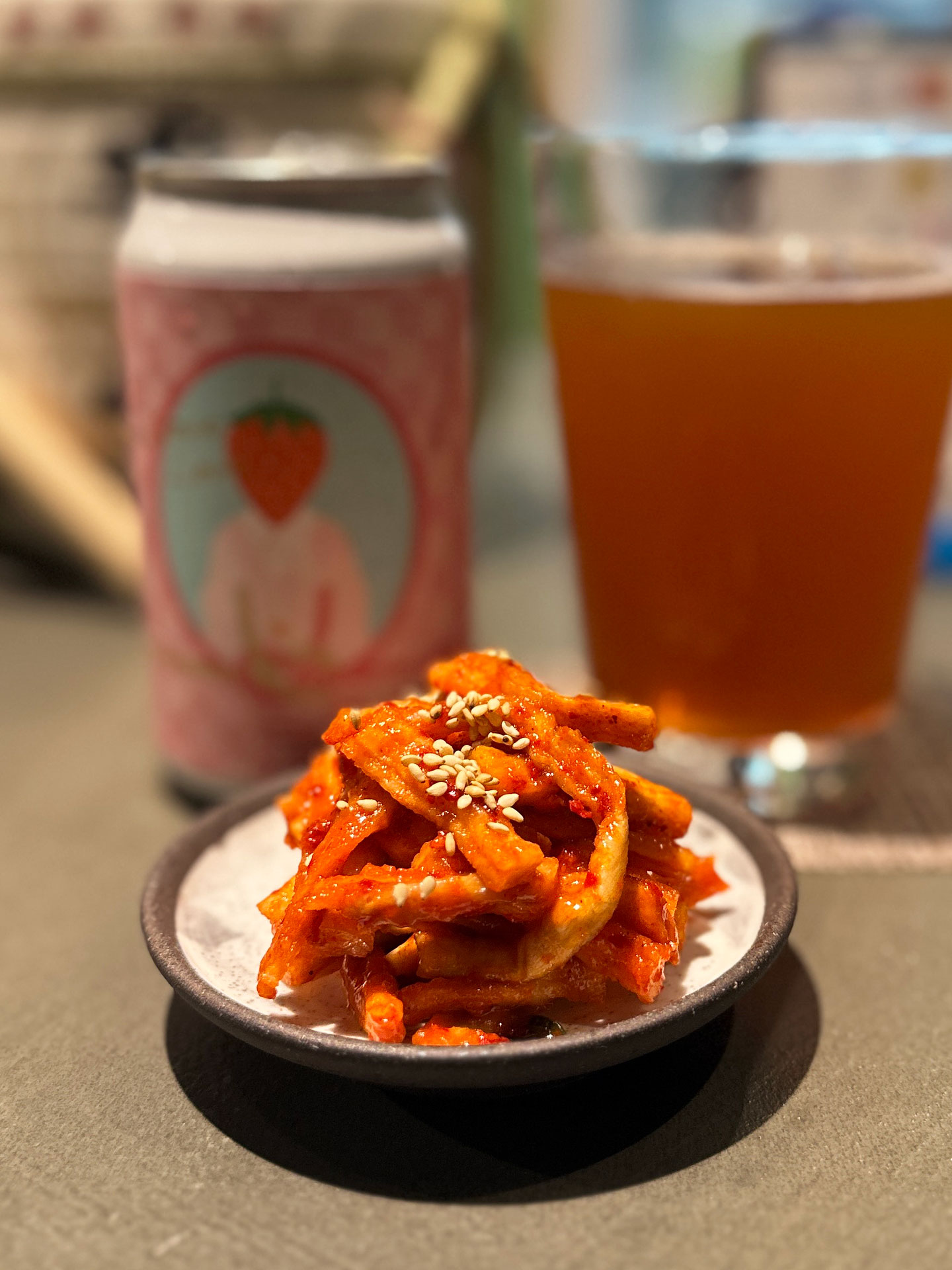 さっぱり柑橘系ののみ口「Kumara Kraze/West Coast Brewing」。美しい紫芋色が眩しい。