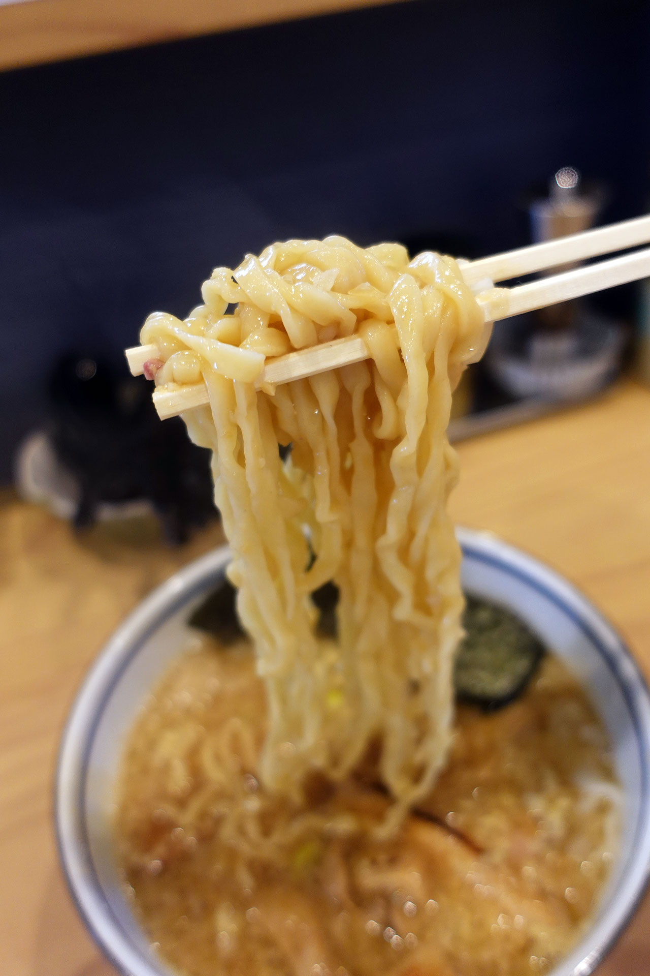 つるつるの中太ちぢれ麺とナイスバランス。