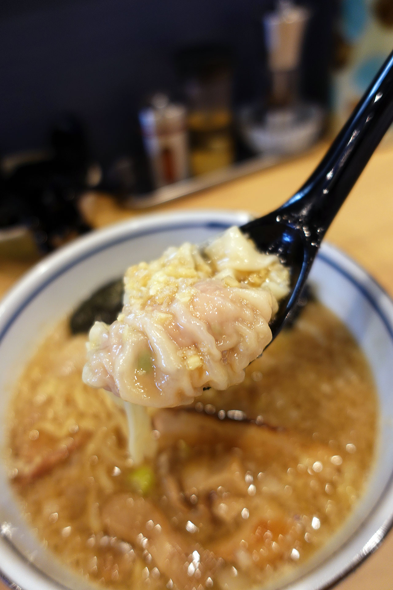 少し前から始めたという「濃厚生姜醤油ラーメン¥1100」に「ワンタン¥150」トッピングで注文。