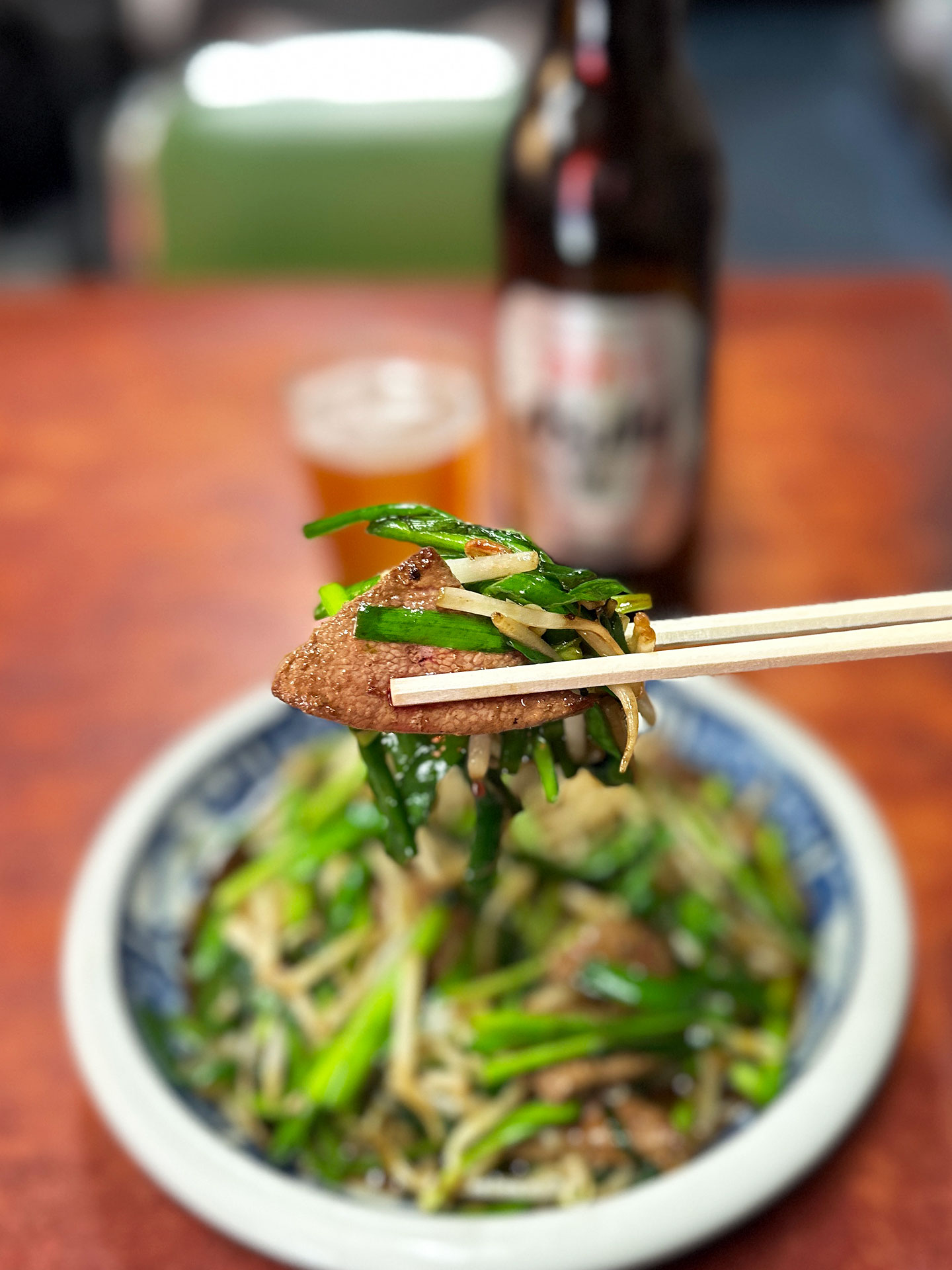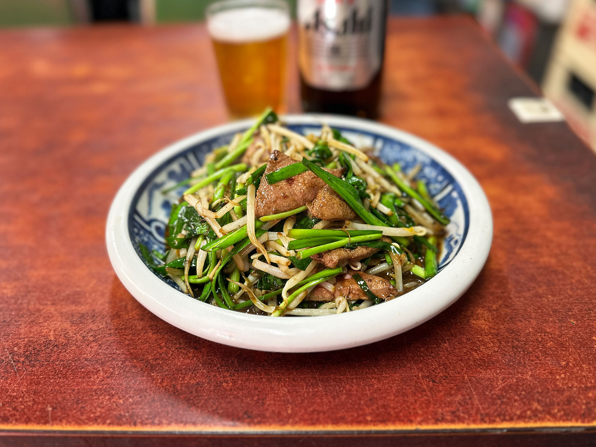 味はいわずもがな。THE街中華の醤油味の「ニラレバー炒め¥650」。