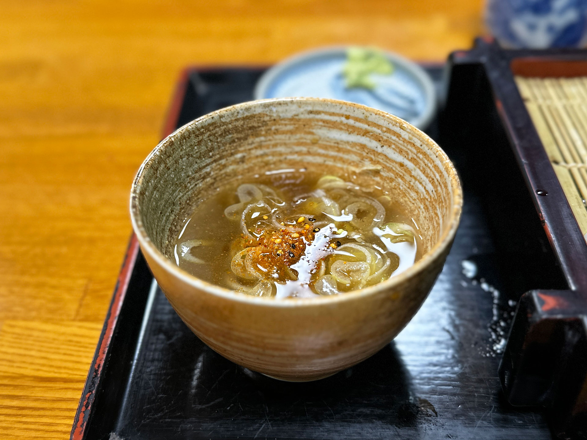 濃い口のつけ汁にタップリすり胡麻。節と胡麻の二重の香り。