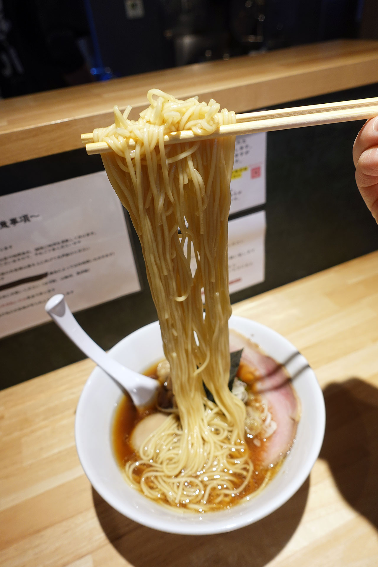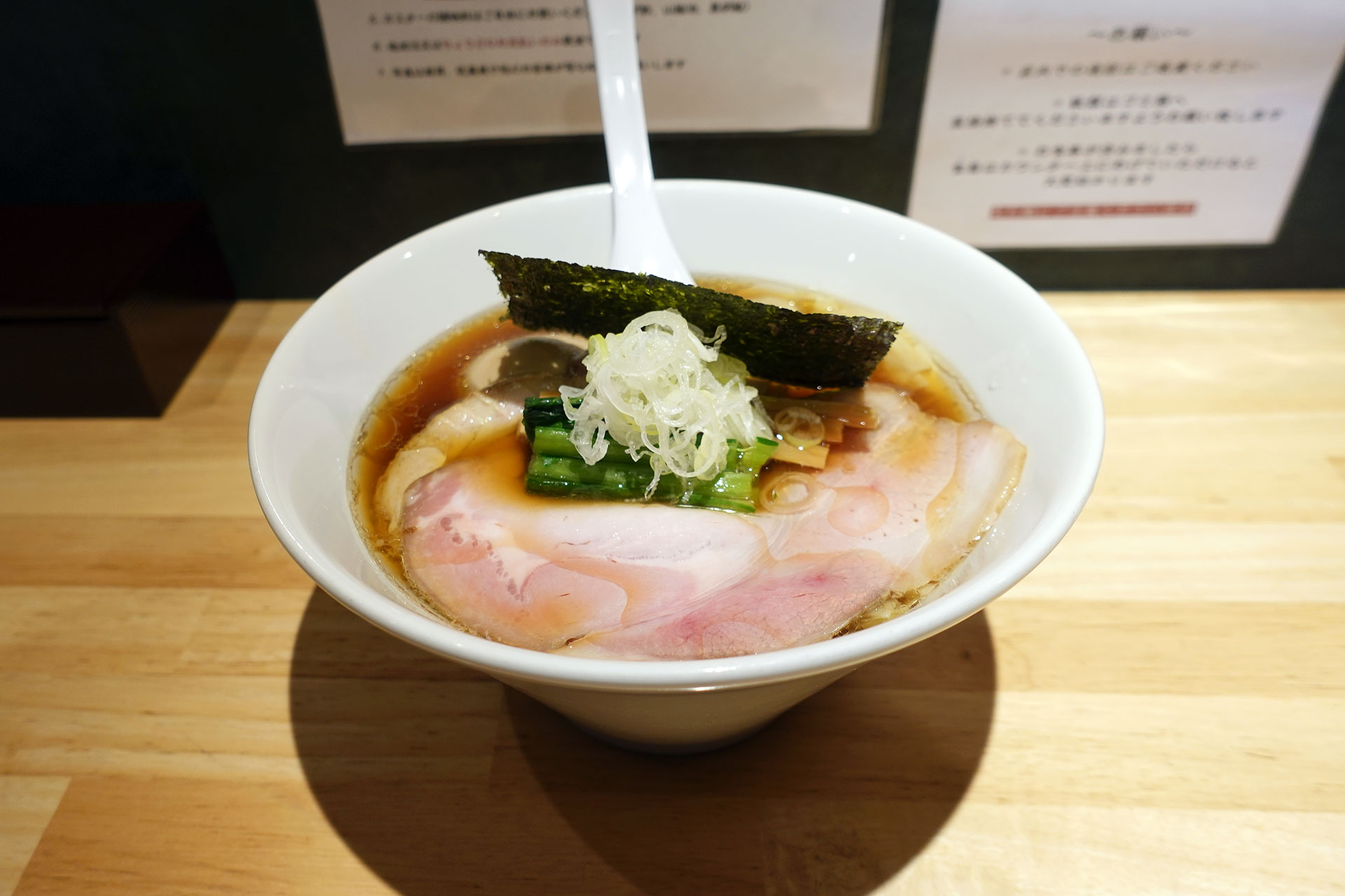 発券機がキャッシュレスに変わっており焦りつつも「中華そば(醤油)¥1000+特製¥400」をバシッっと注文。