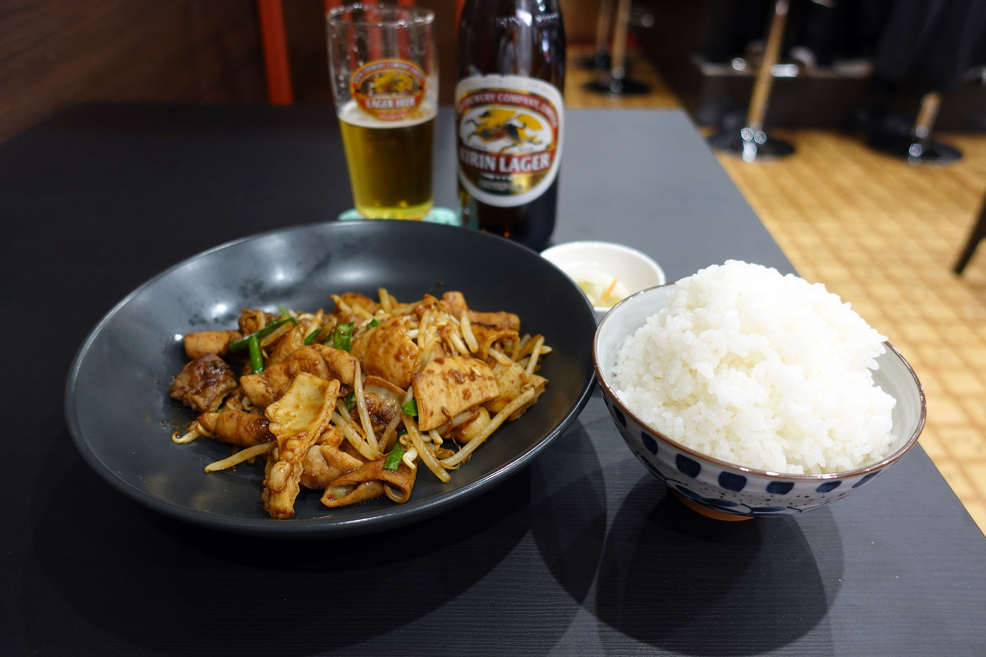 本日のおすすめより「牛ホルモとキャベツの甘から炒め¥1400」をライス大盛りで注文。