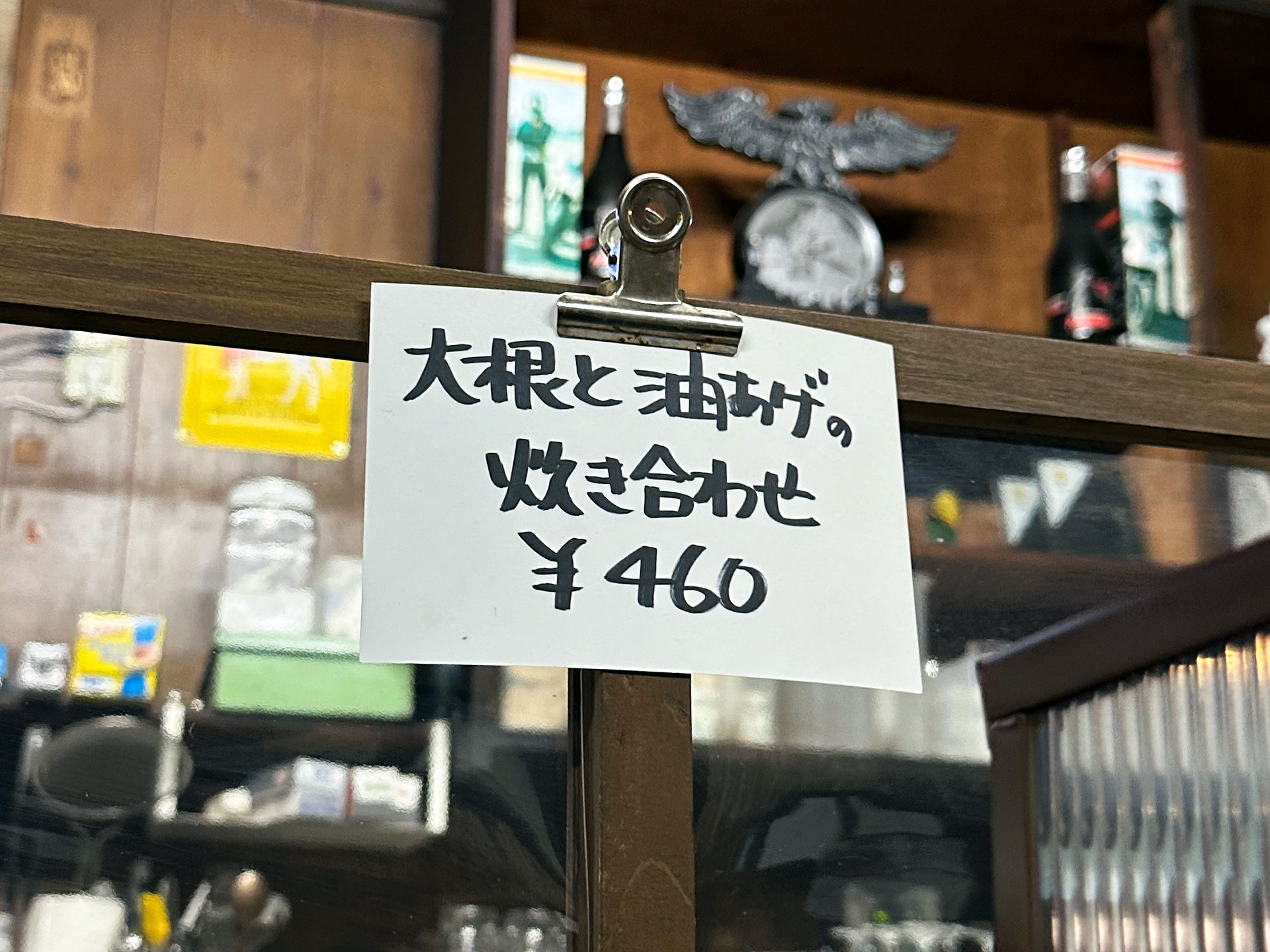味しみしみふっくら「大根と油あげの炊き合わせ¥460」。汁ものみ干し(2回目)。