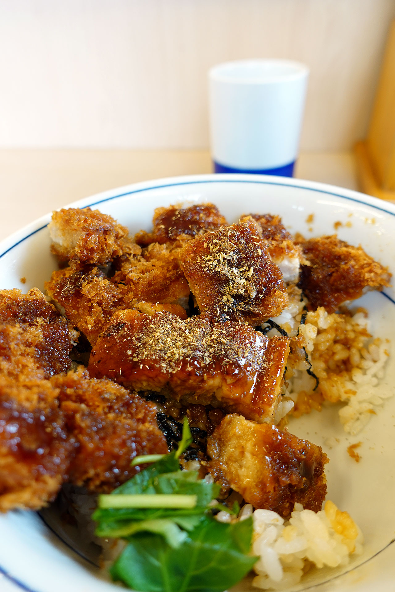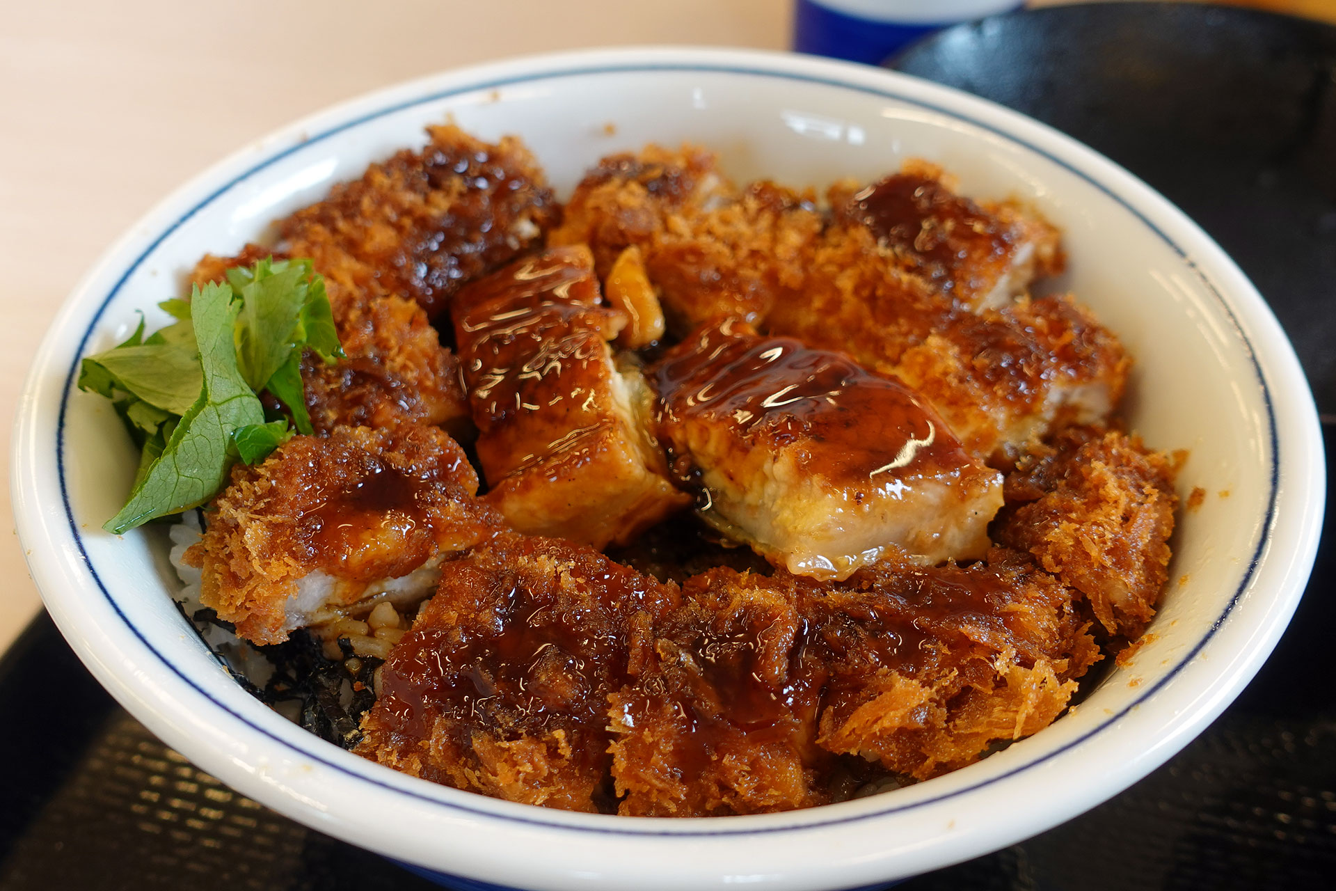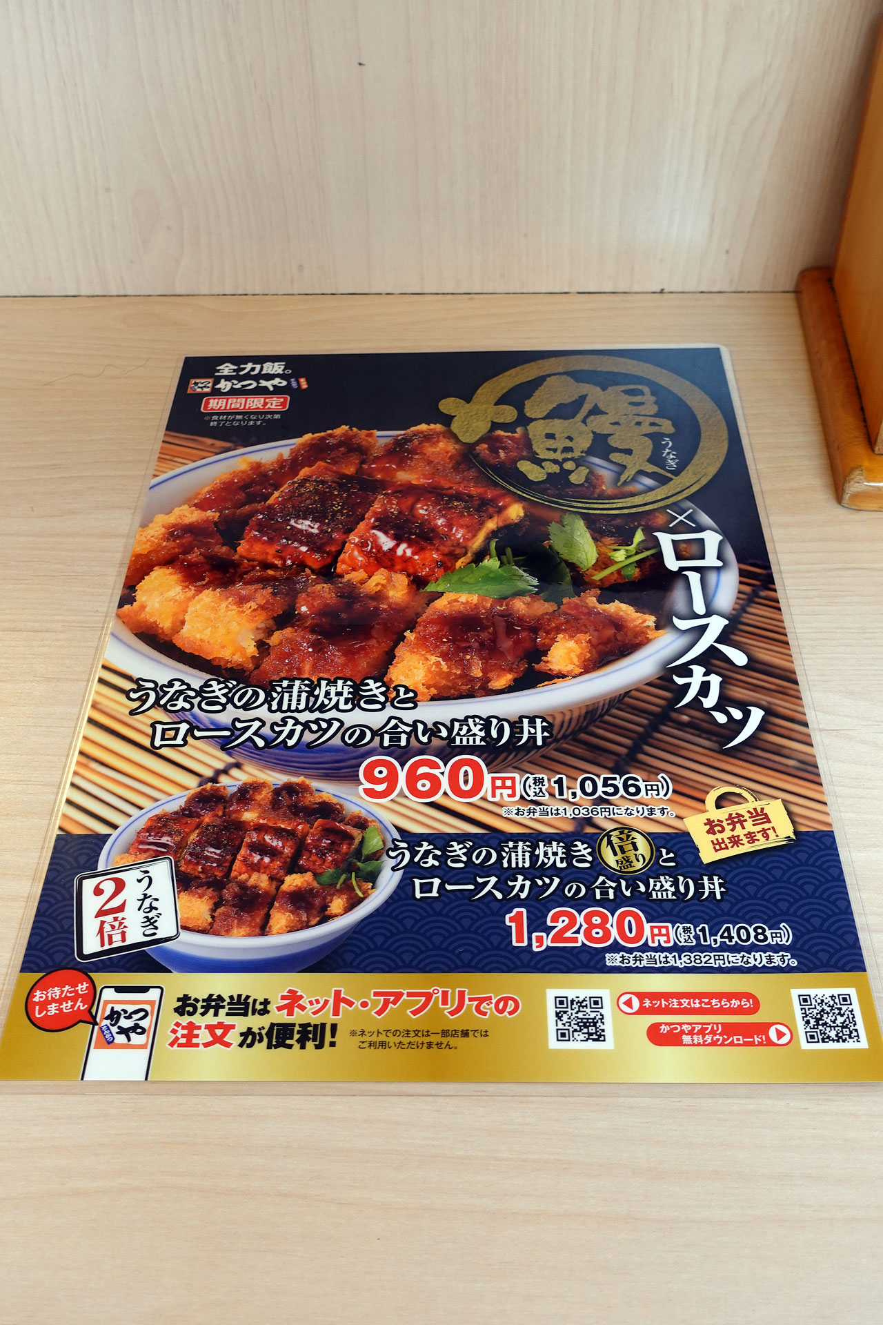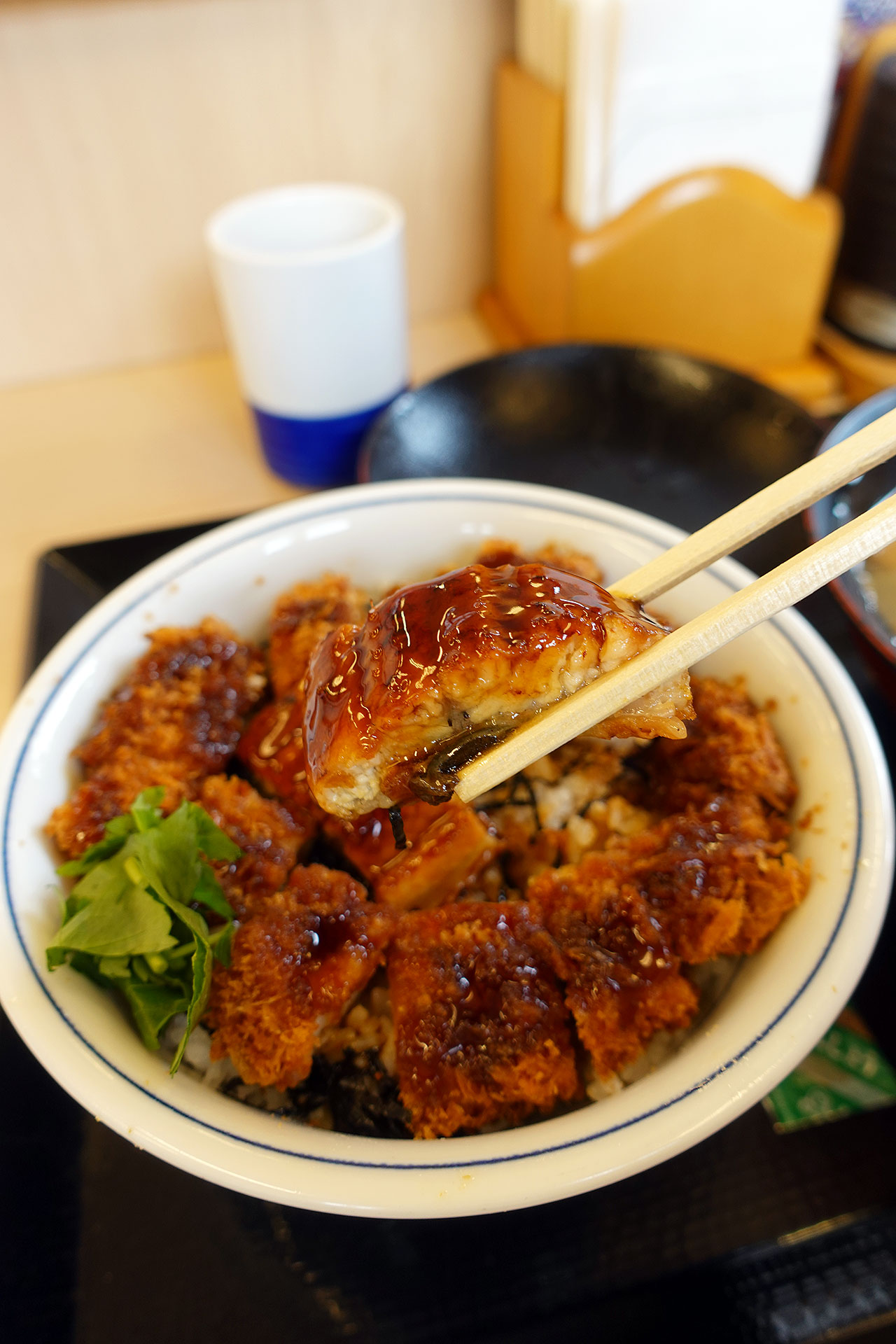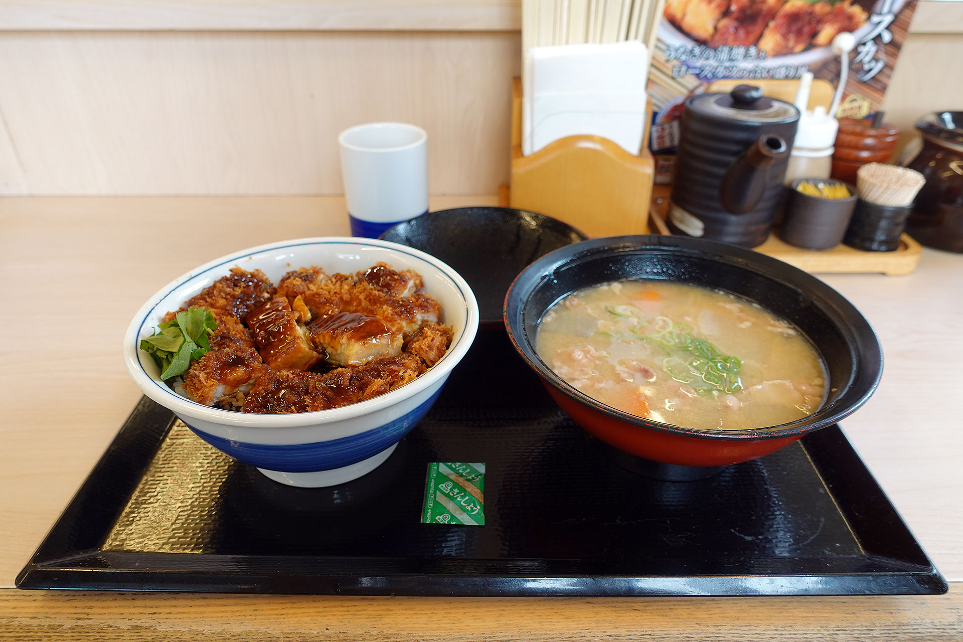 もちろん「うなぎの蒲焼きとロースカツの合い盛り丼¥1056」と「とん汁(大)¥220」を注文。