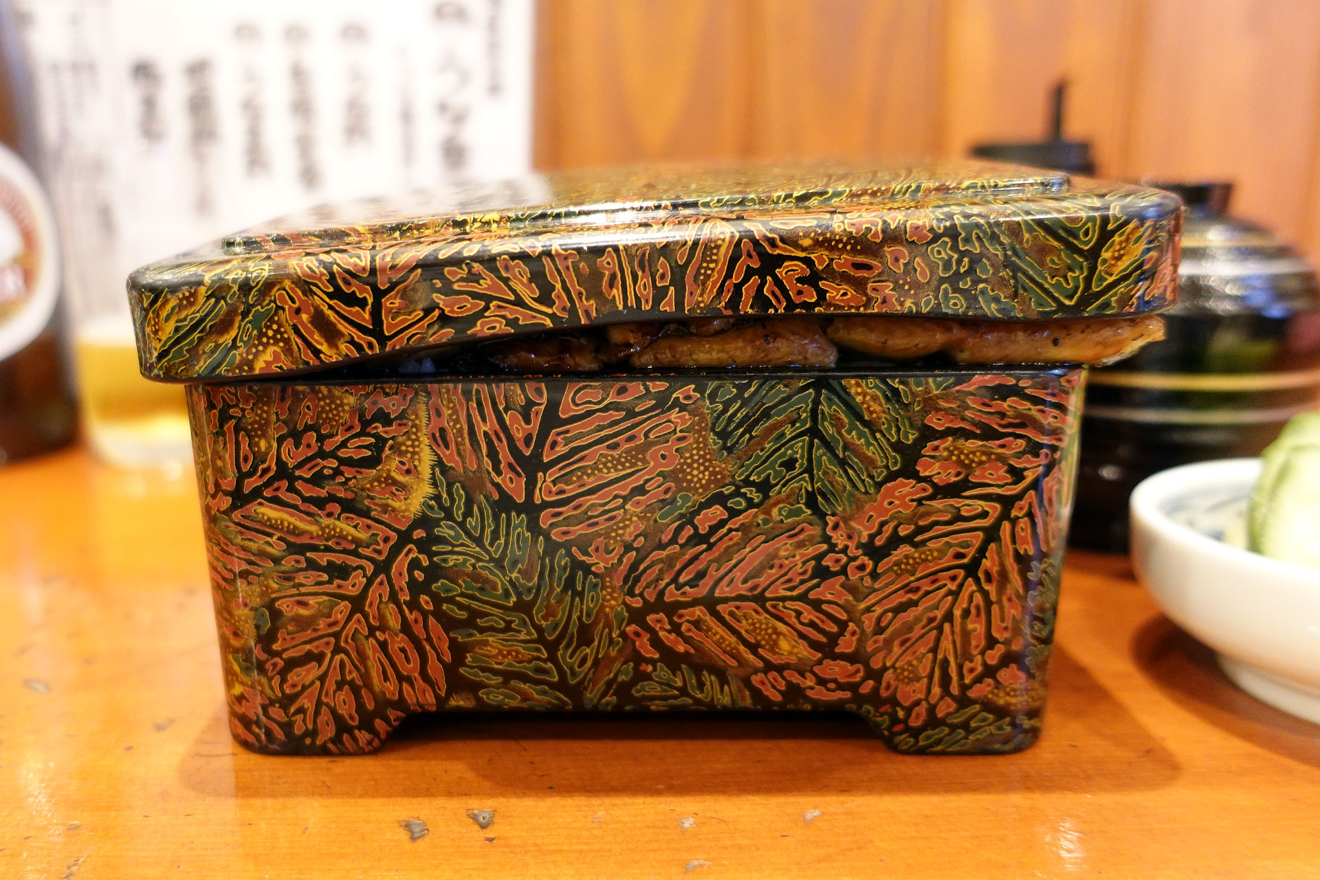 ふたが閉まらないどころかうなぎ様がはみ出るお重。