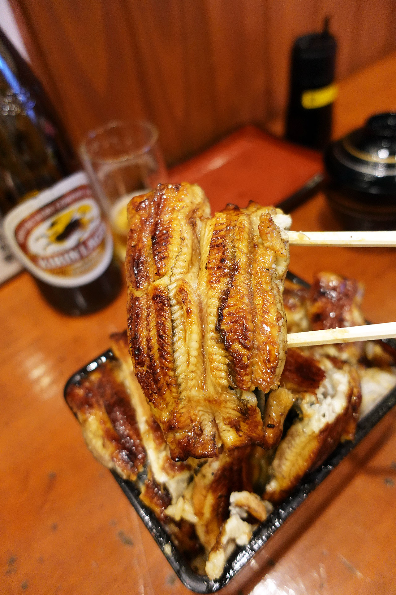 天気は雨。行列少なめと見込み、人気うなぎ店「和友」へ。