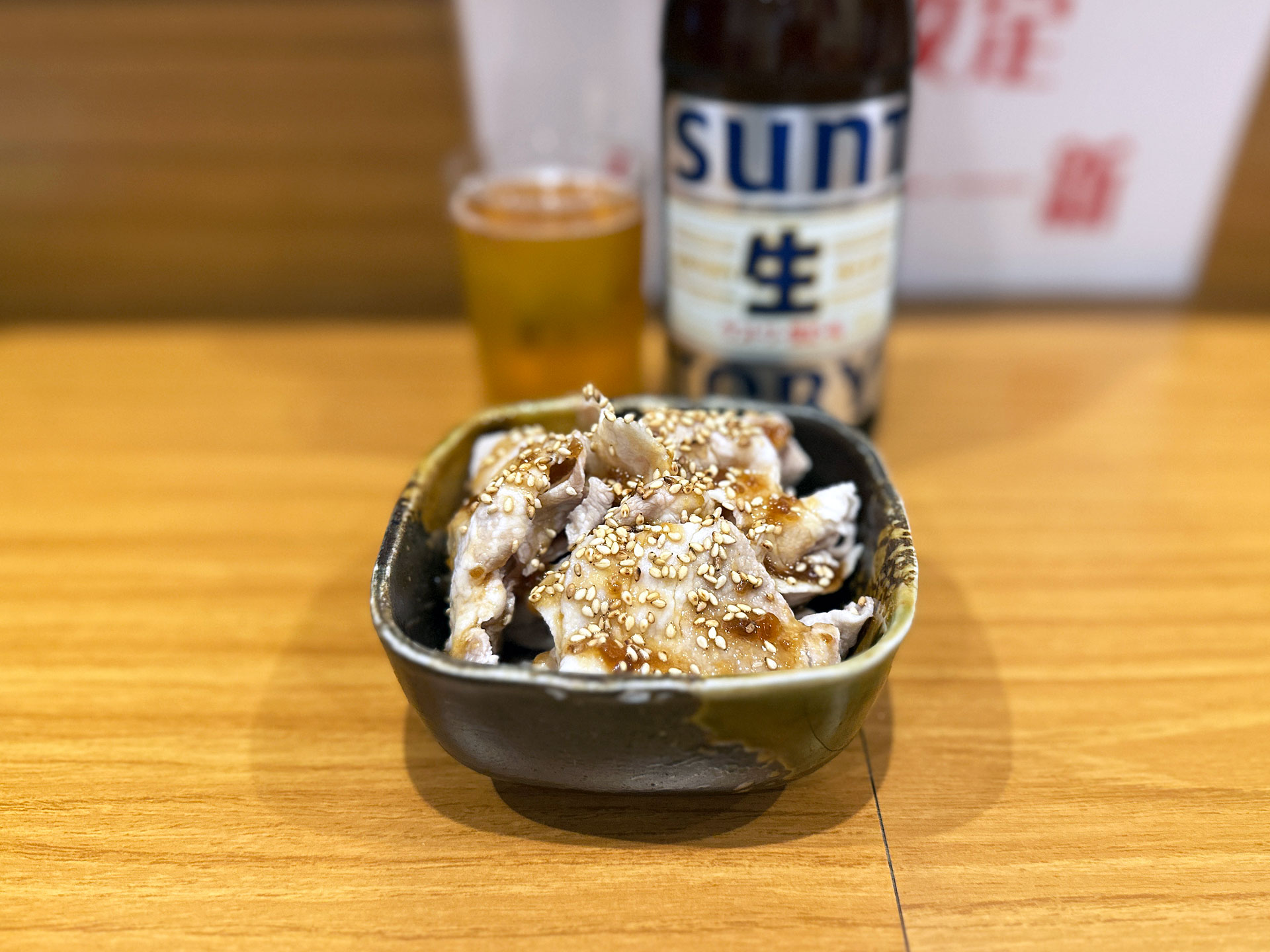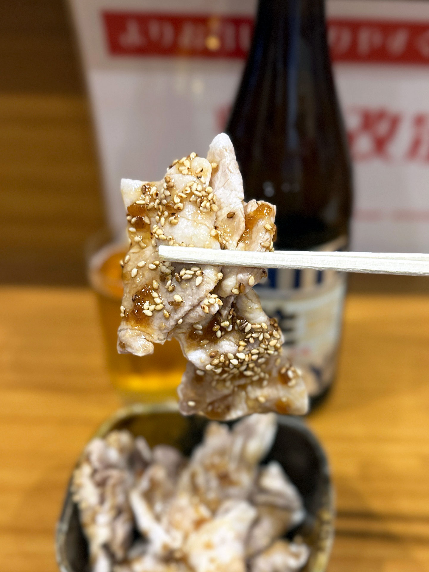 嬉しいことにビールは瓶、チョイスした豚しゃぶ黒酢ソースもしっかりボリューム。