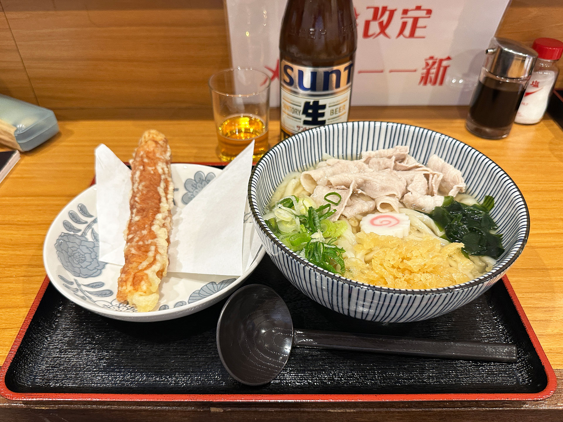 〆に「豚うどん¥800」と「ちくわ¥140」を注文。