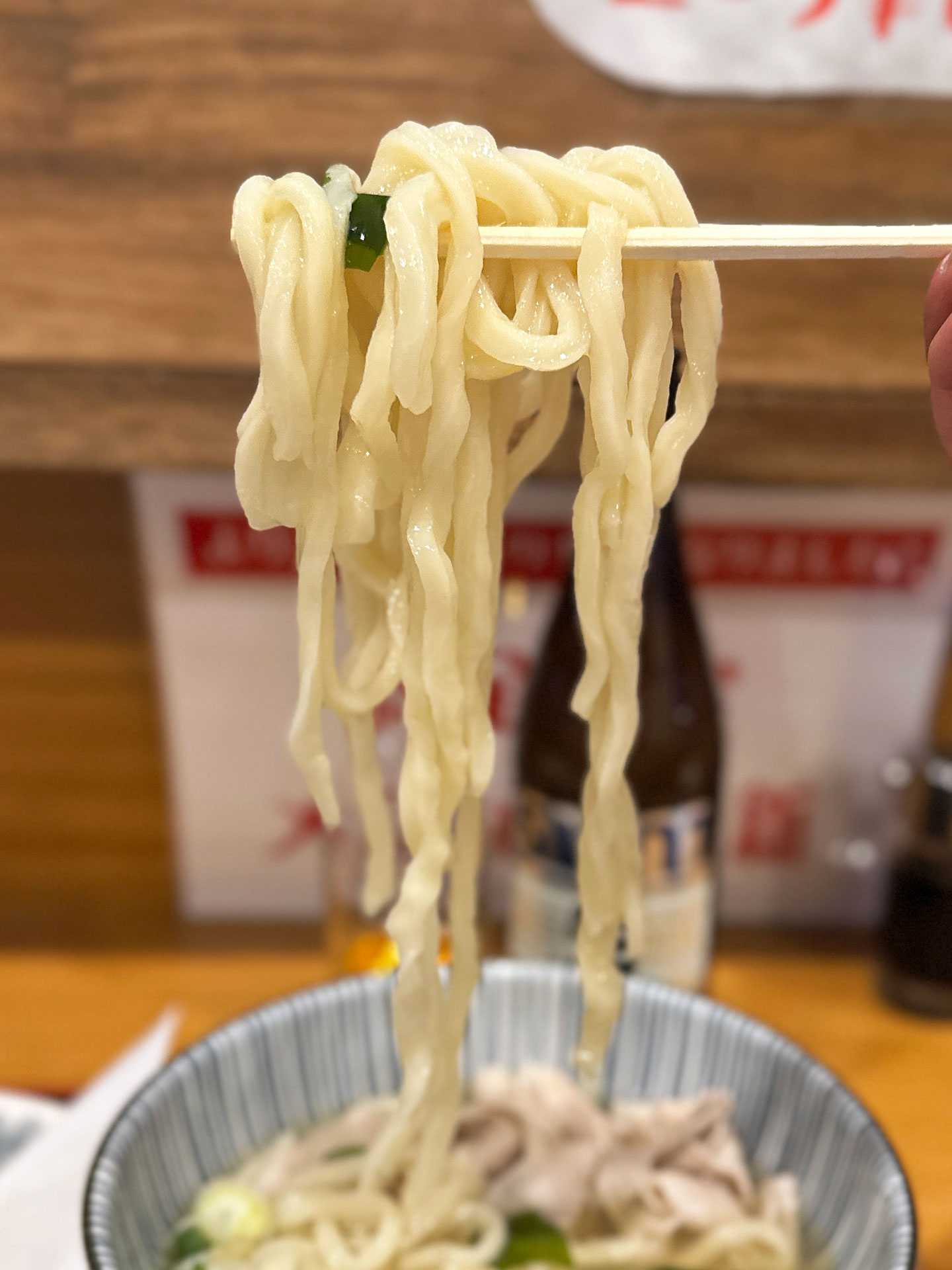 さぬきうどんのような強めのコシでも伊勢うどんのようにやわくもないモチムニ食感のうどん。