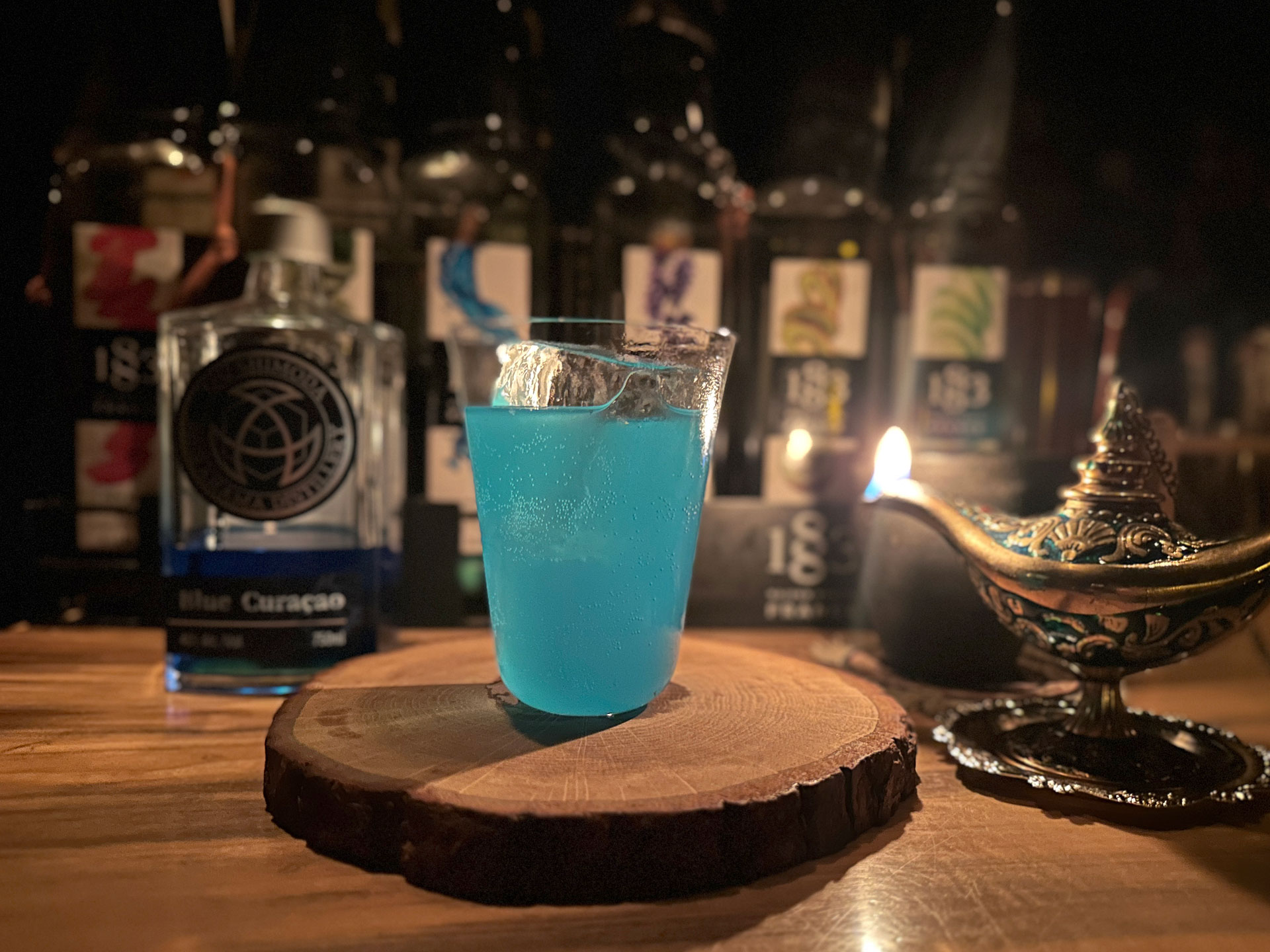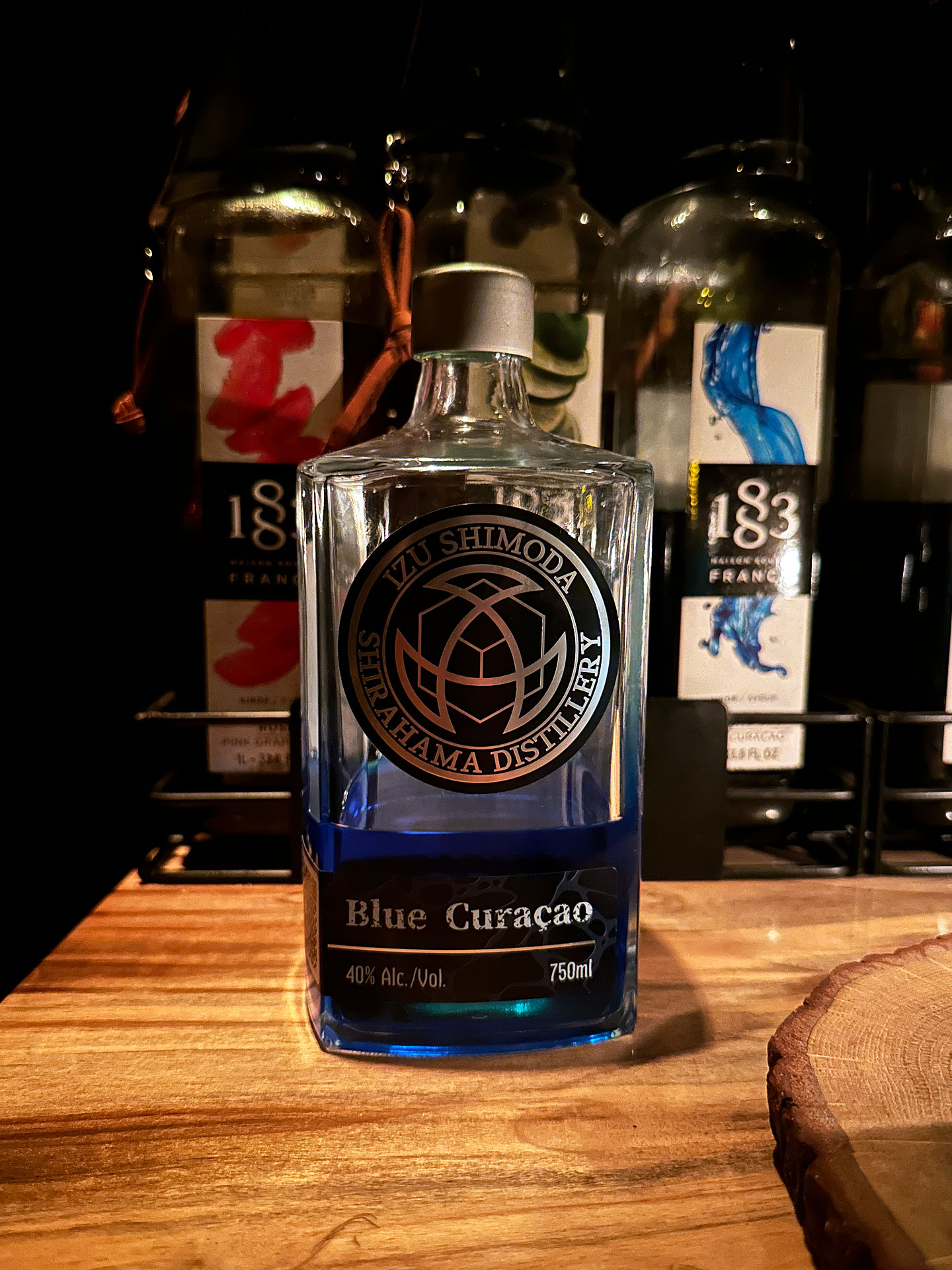 伊豆、下田で蒸留しているという「白浜クラシックブルーキュラソー」。