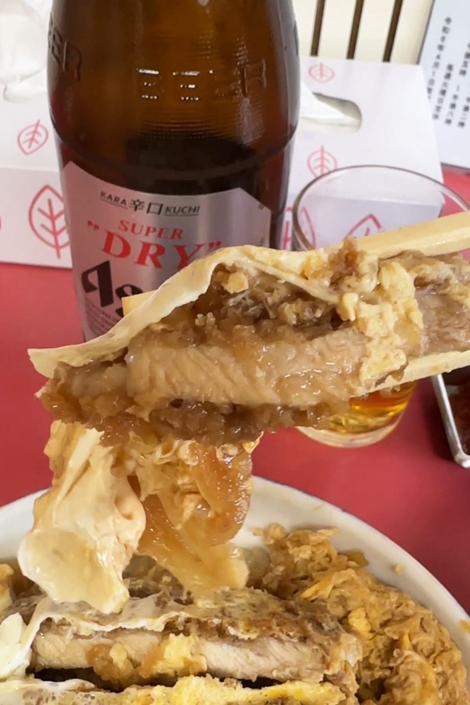アツアツごはんに揚げたてのカツがノる。コレよコレ。