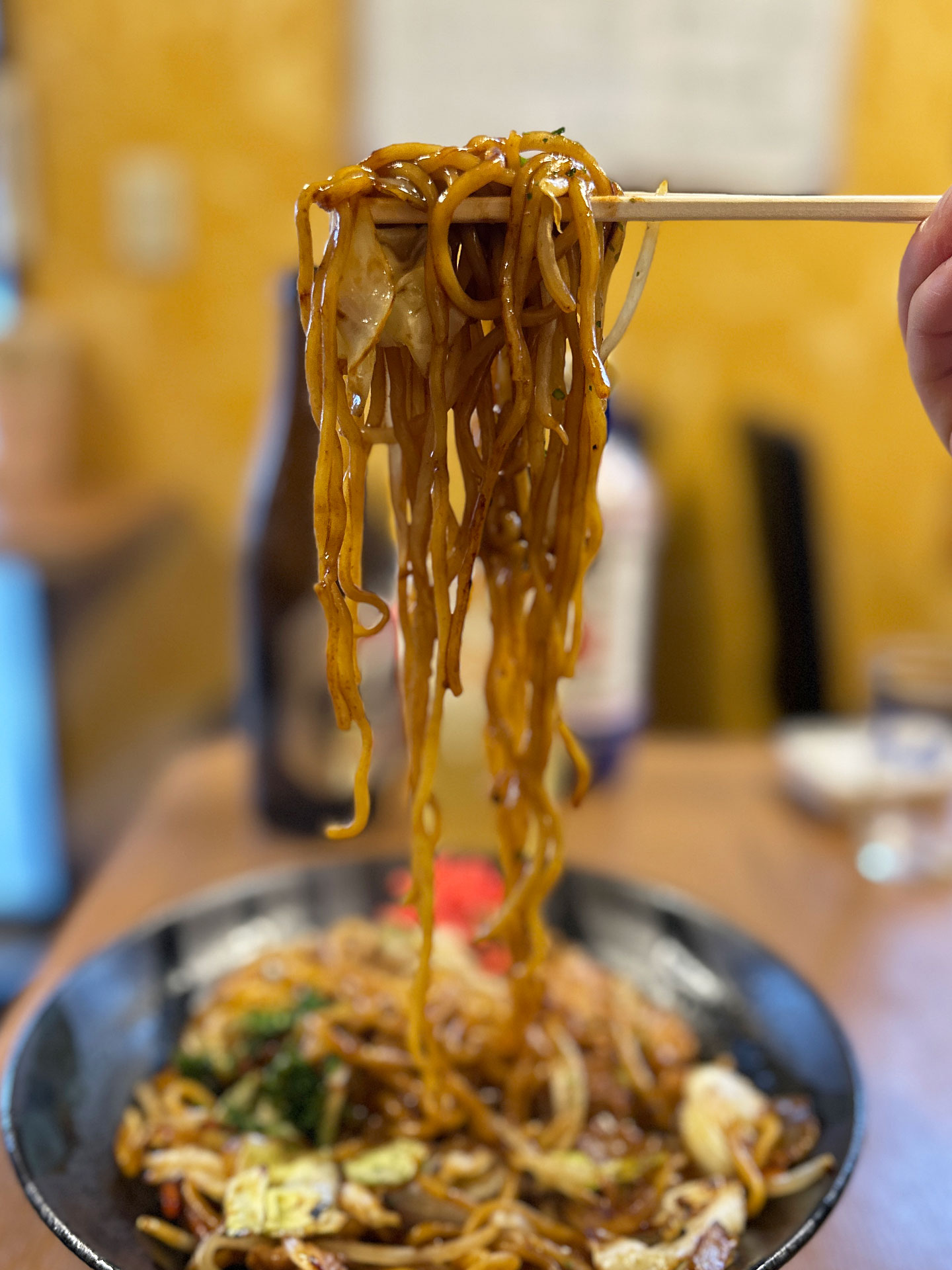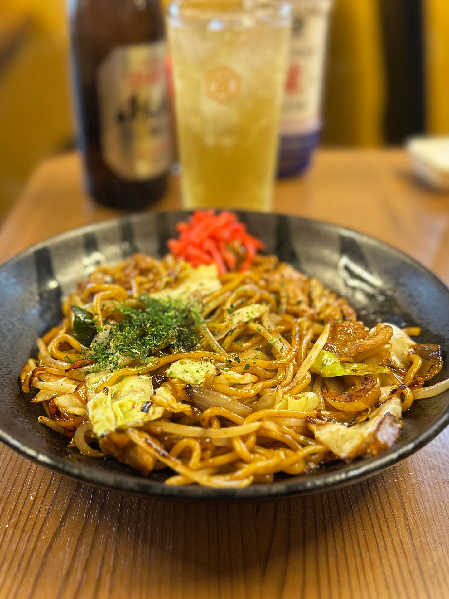 「もちもち焼きそば¥680」をつまみに「下町ハイボール¥300」でラストスパート。