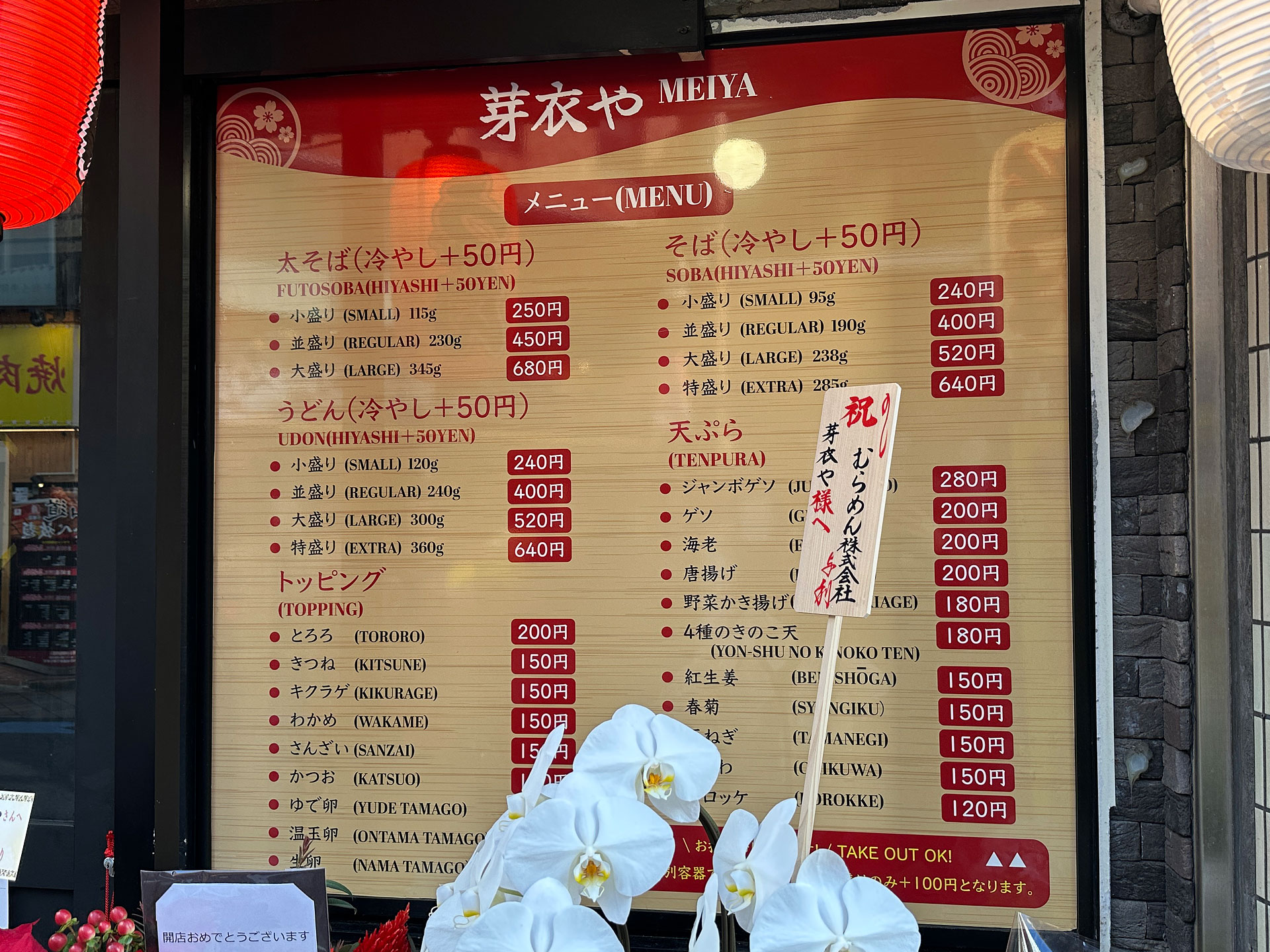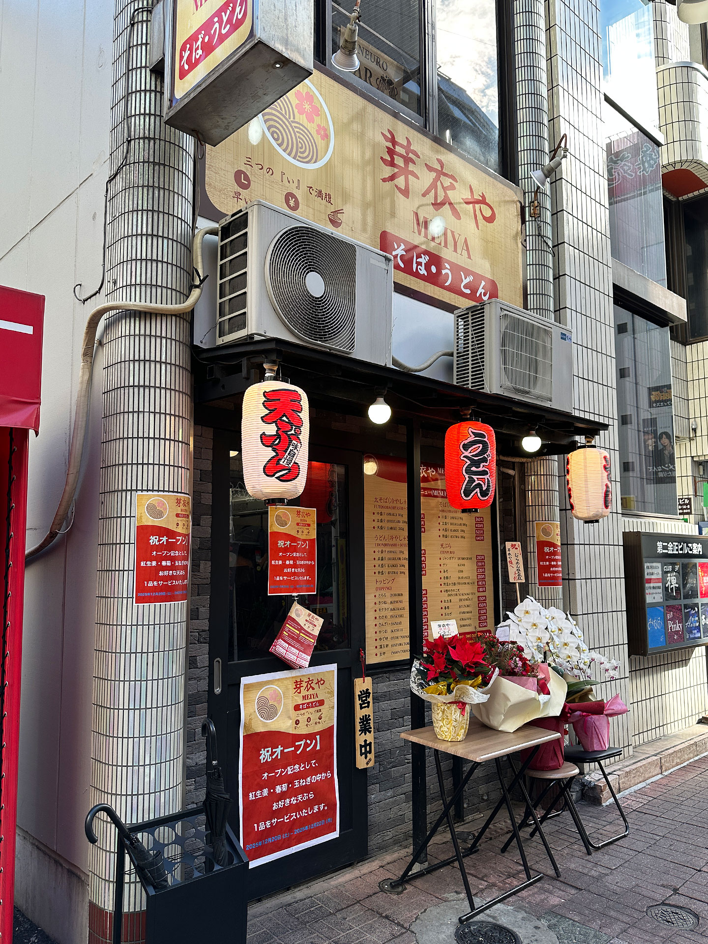 2025年12月22日まで紅生姜・春菊・玉ねぎ天を開店記念サービス。
