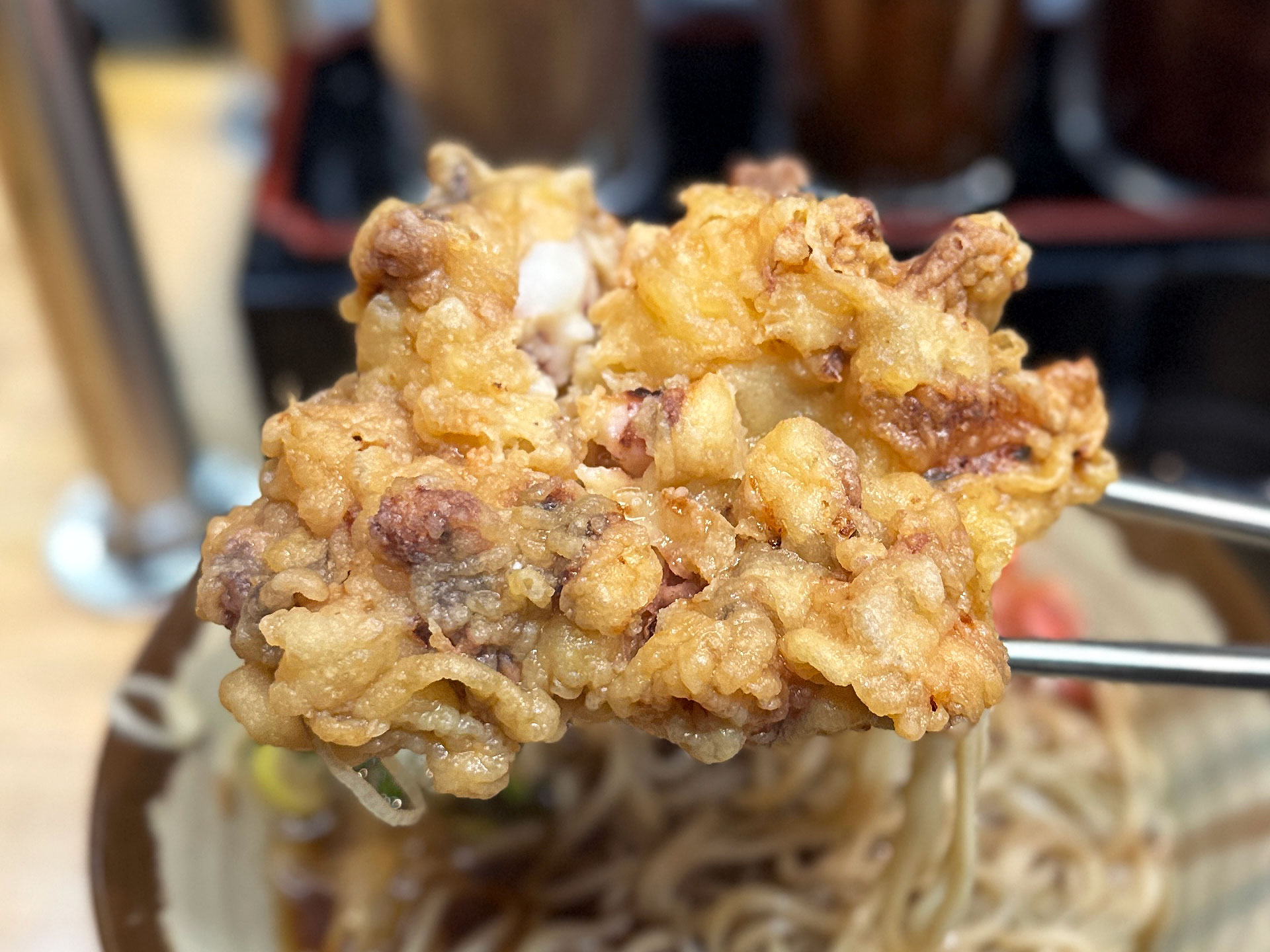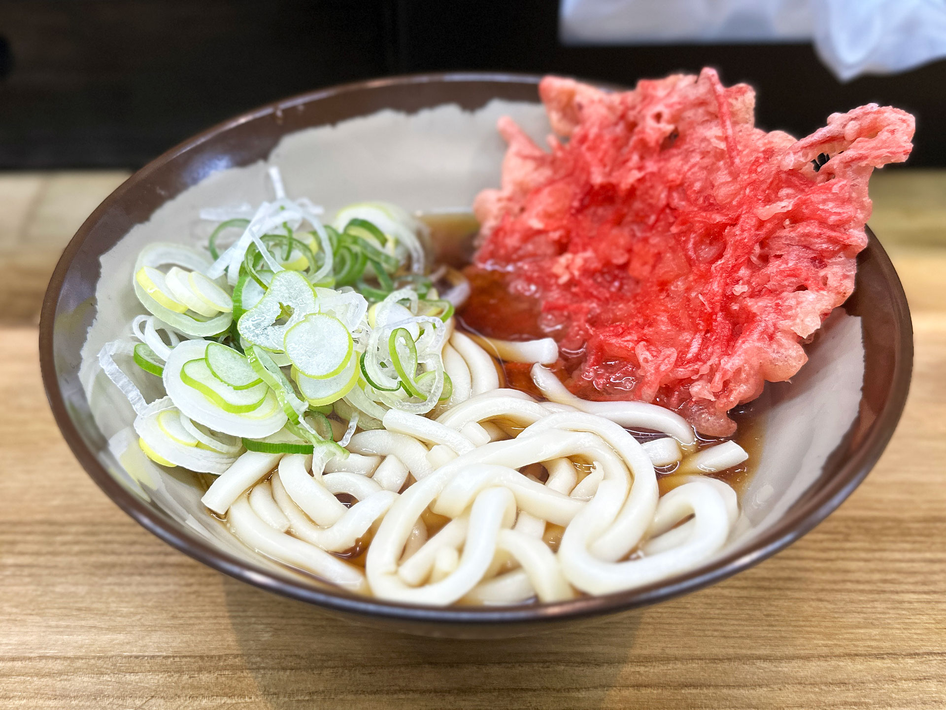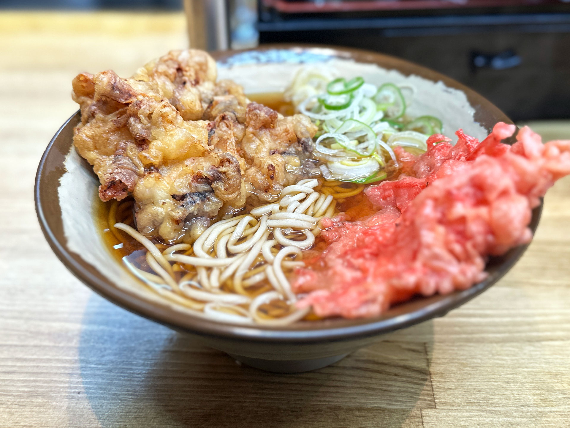 太そば(小)と春菊天を注文するも「うどん(小)¥240」と「紅生姜天(サービス)」が着器。