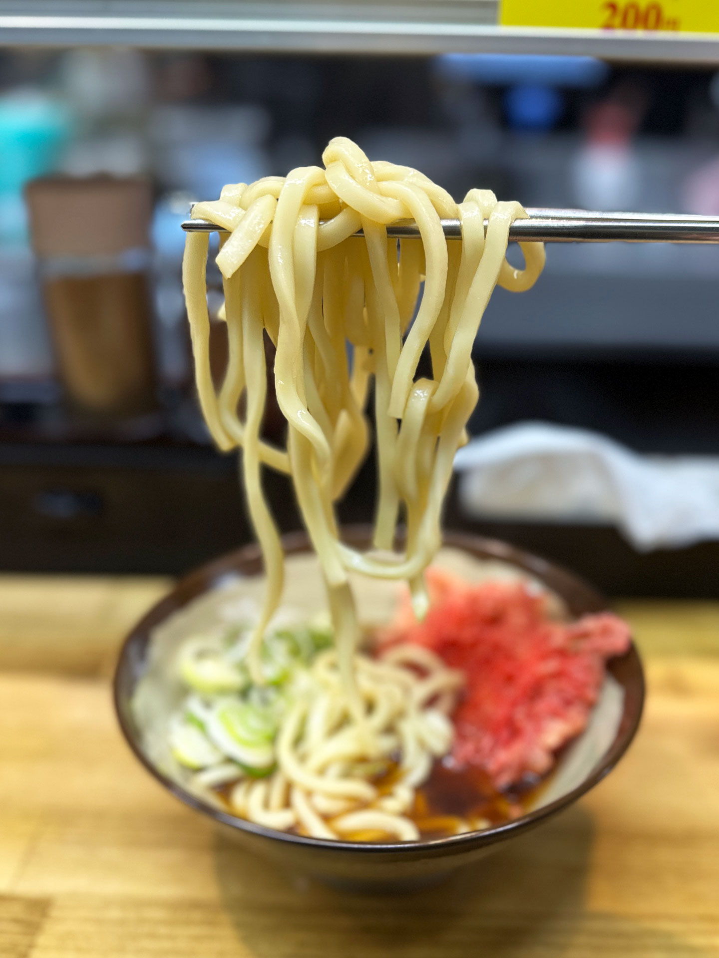 「そば(並盛)¥400」と「ゲソ天¥200(紅生姜天サービス)」を注文。