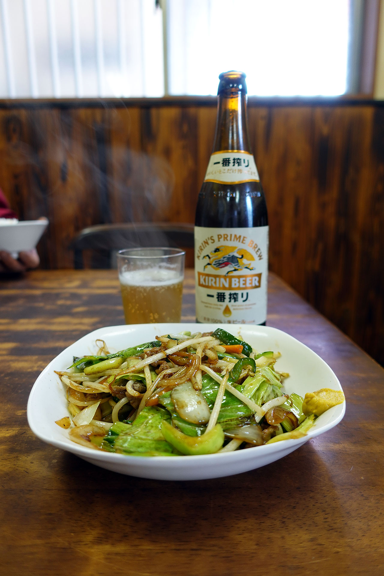 ニンニクの芽のパンチも加わりビールがノンストップ。ちびちびからグビグビ。
