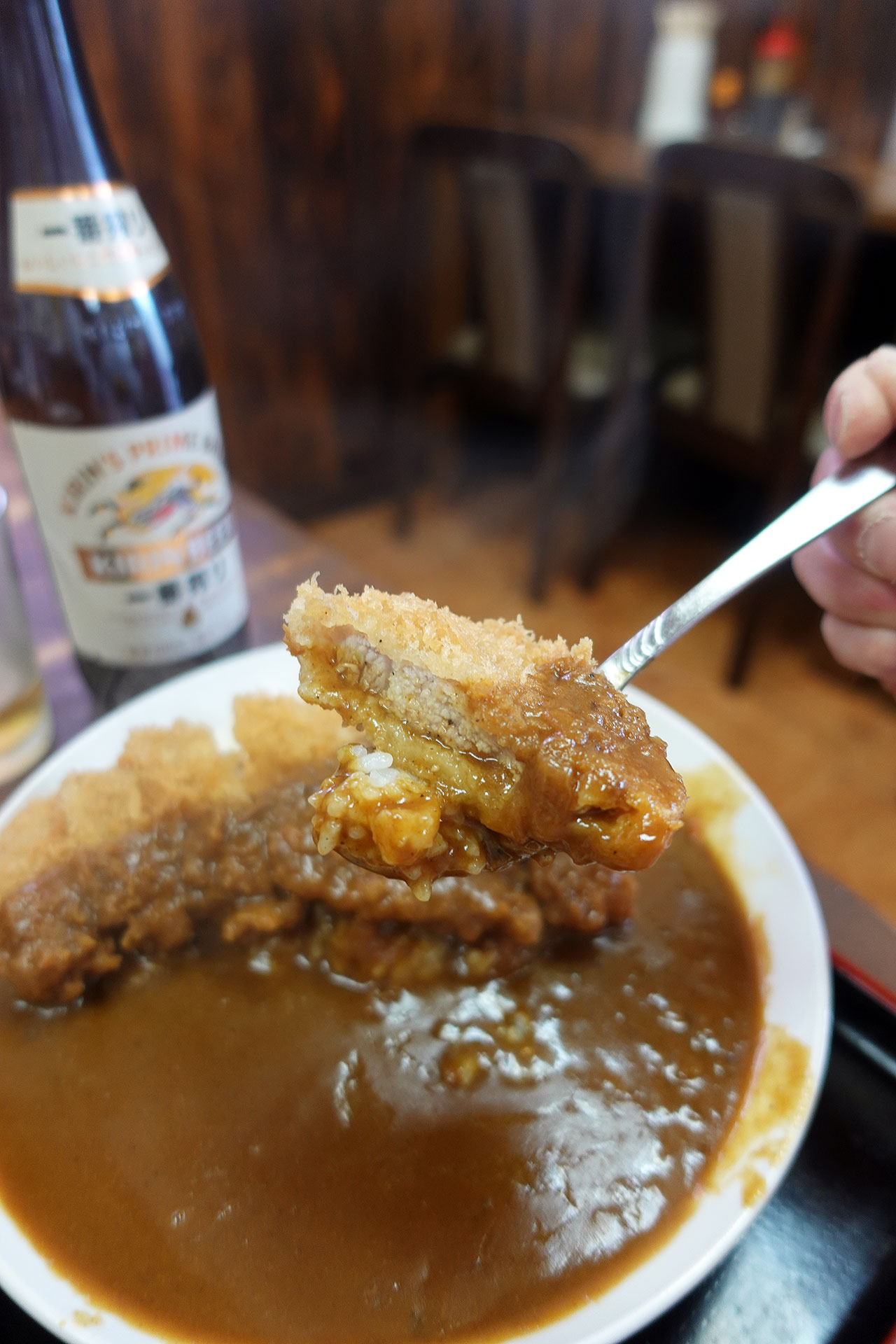 大ぶりかつ。ごはんたっぷり。ルーもたっぷり。原価厨もニンマリすると思う。
