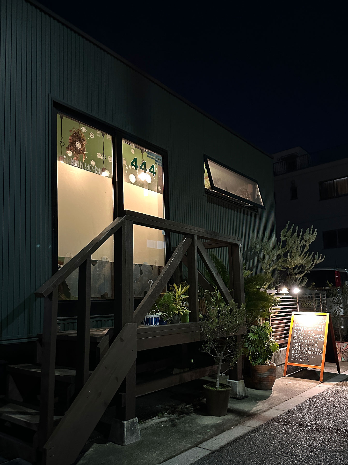 瑞江の閑静な住宅街に佇むブロッコリー色の飲み屋「444」へ。