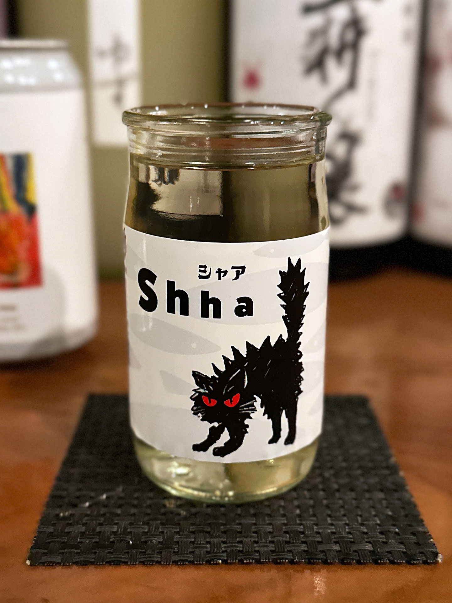 ラベルがかわいいファーストコンタクトの純米カップ酒「秀よし Shha猫」。シャア↑↑