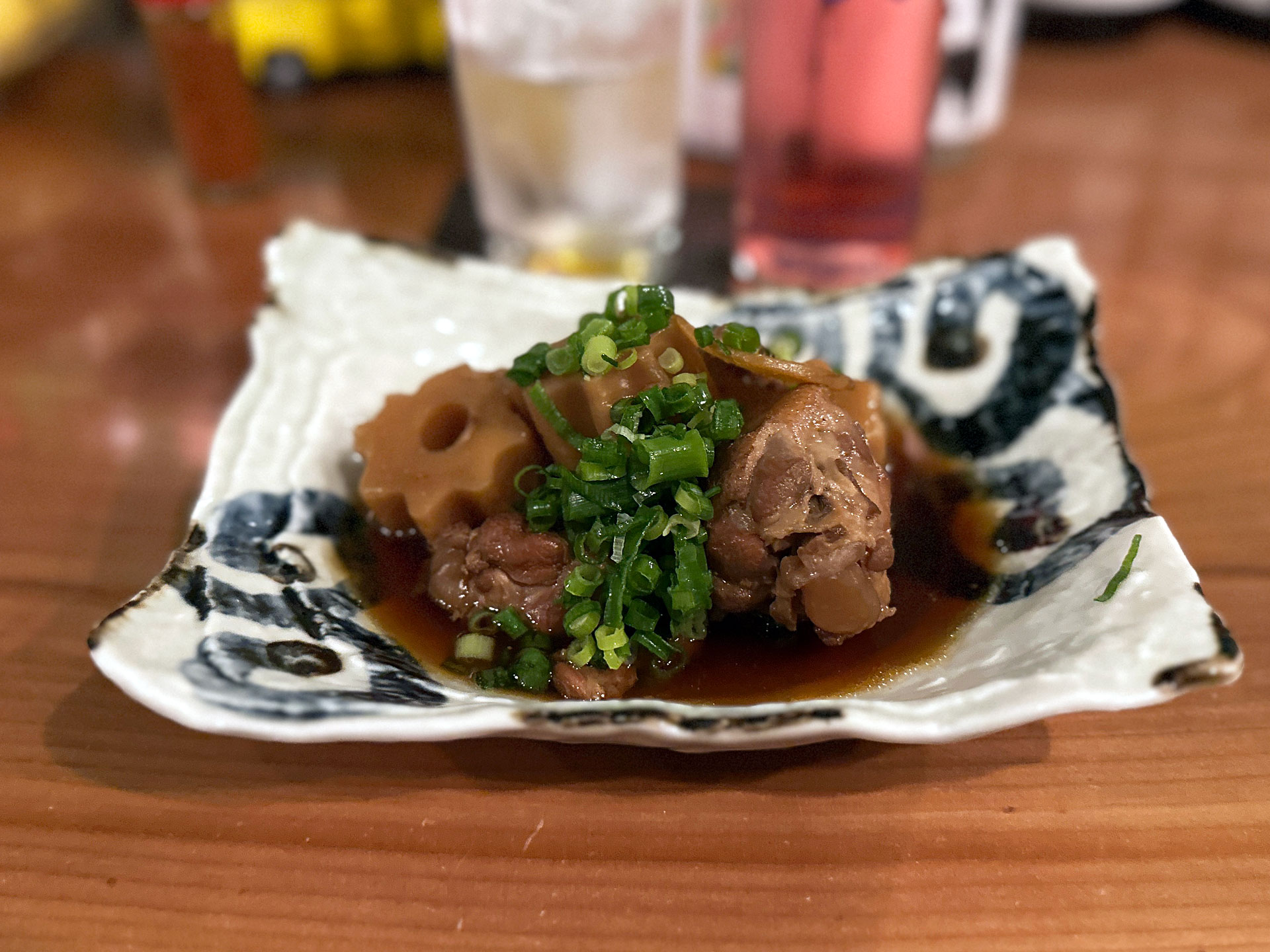 しっかり味の「鶏手羽とちくわぶの甘辛煮」。鶏はもちろん味シミシミのちくわぶが絶品。