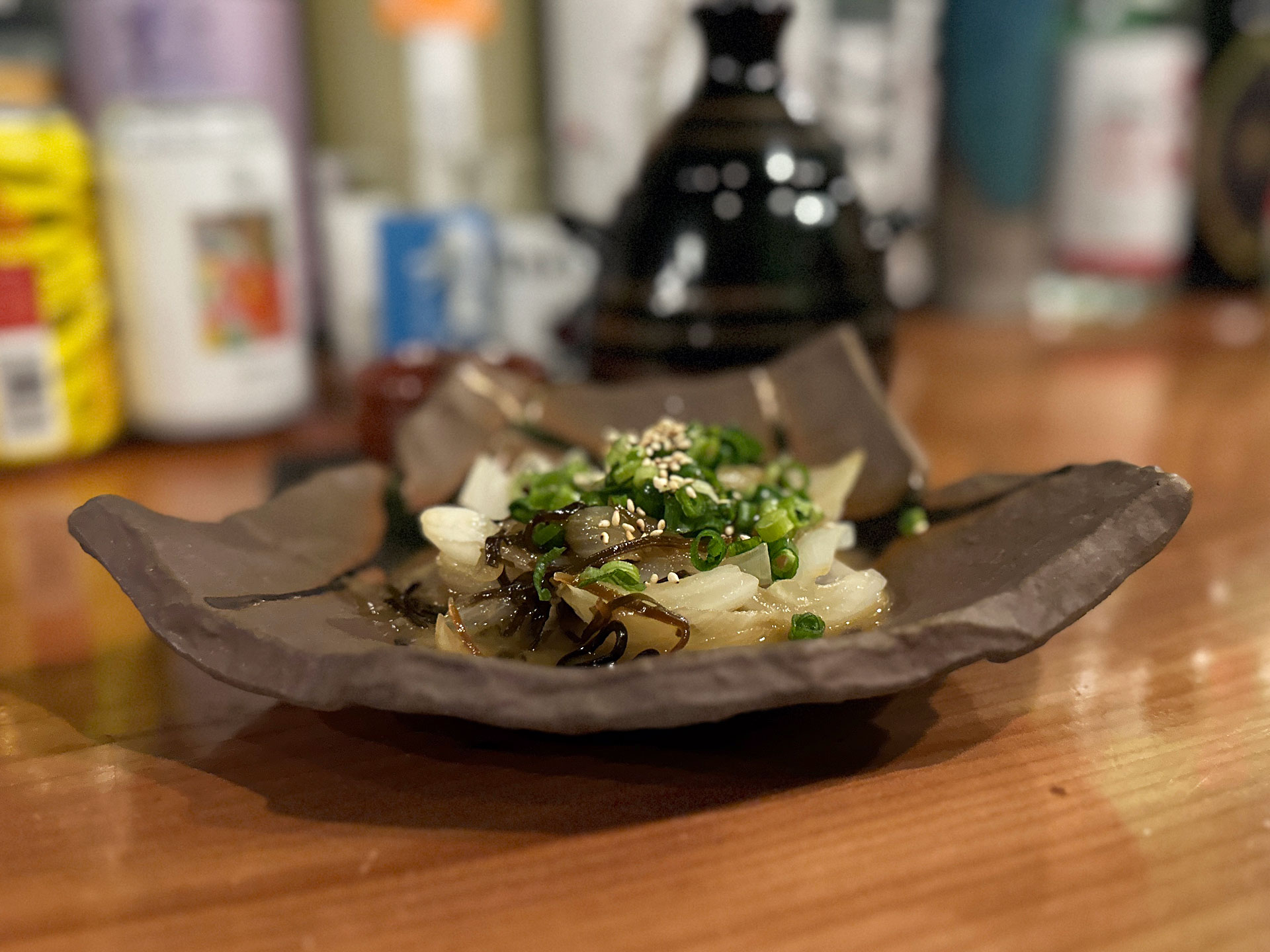 日本酒のつまみにはたまらんすぎる「新玉ねぎの塩昆布蒸し」。