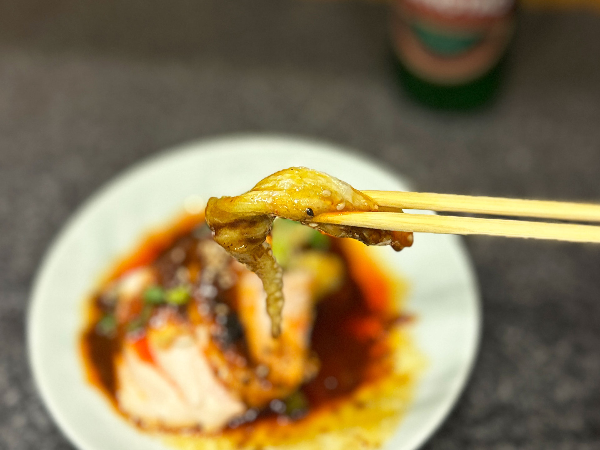 記念すべき一皿目は、コクのあるタレ、あとから追いついてくる辛味「重慶式よだれどり¥800」。