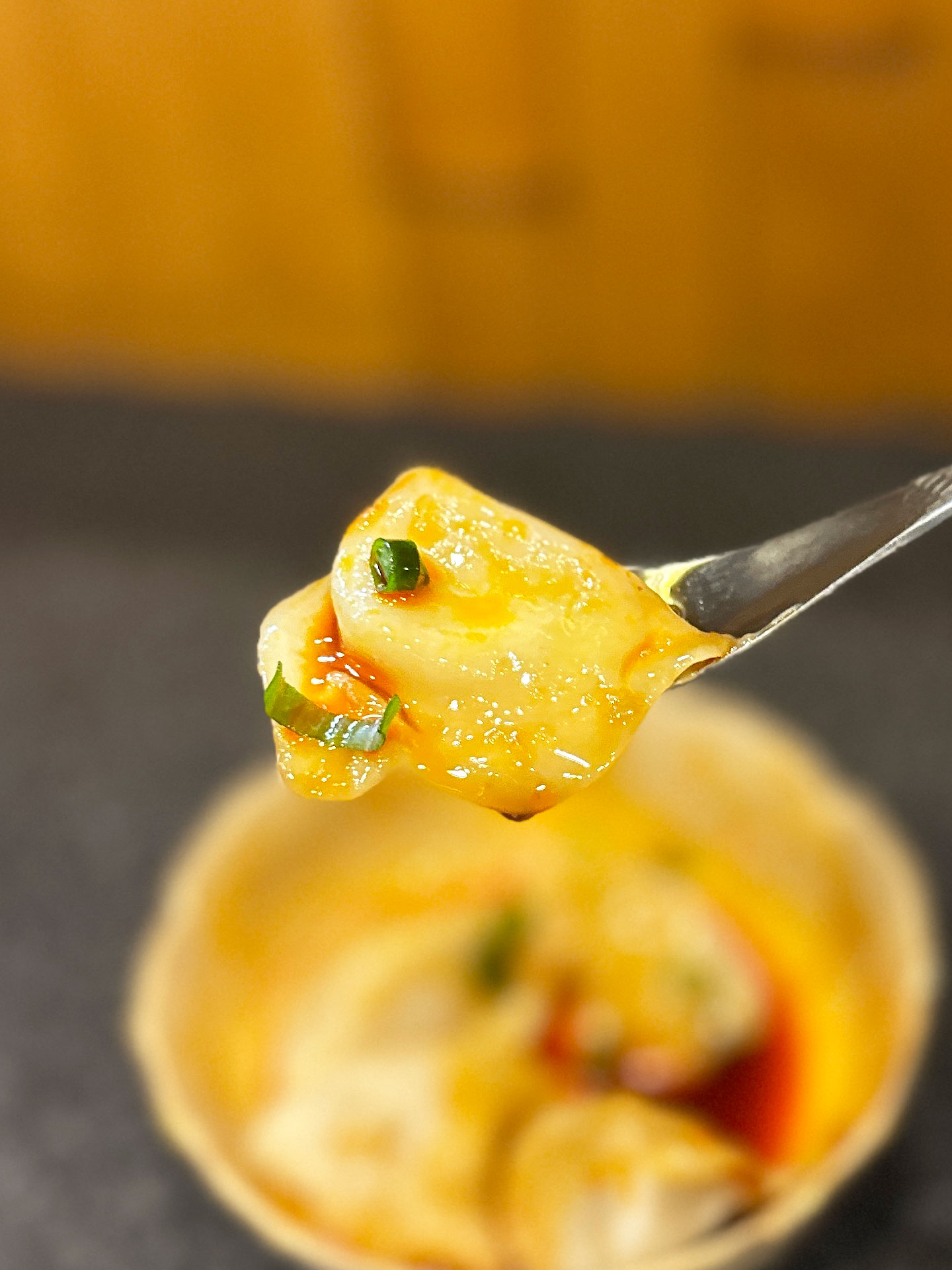 お次は「スパイスチリオイルの水ぎょうざ¥350」。