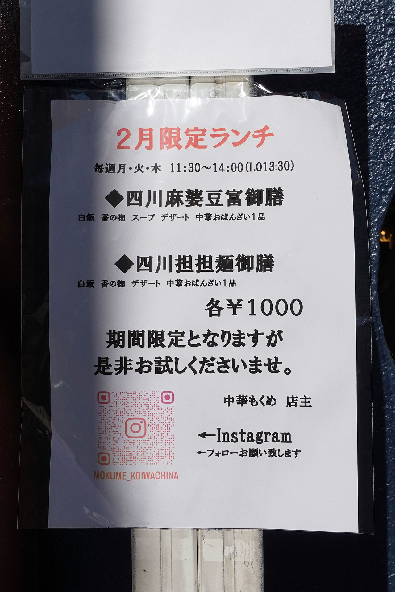 小岩駅から少し離れた蔵前橋通り沿いの中華料理屋「もくめ」へ。