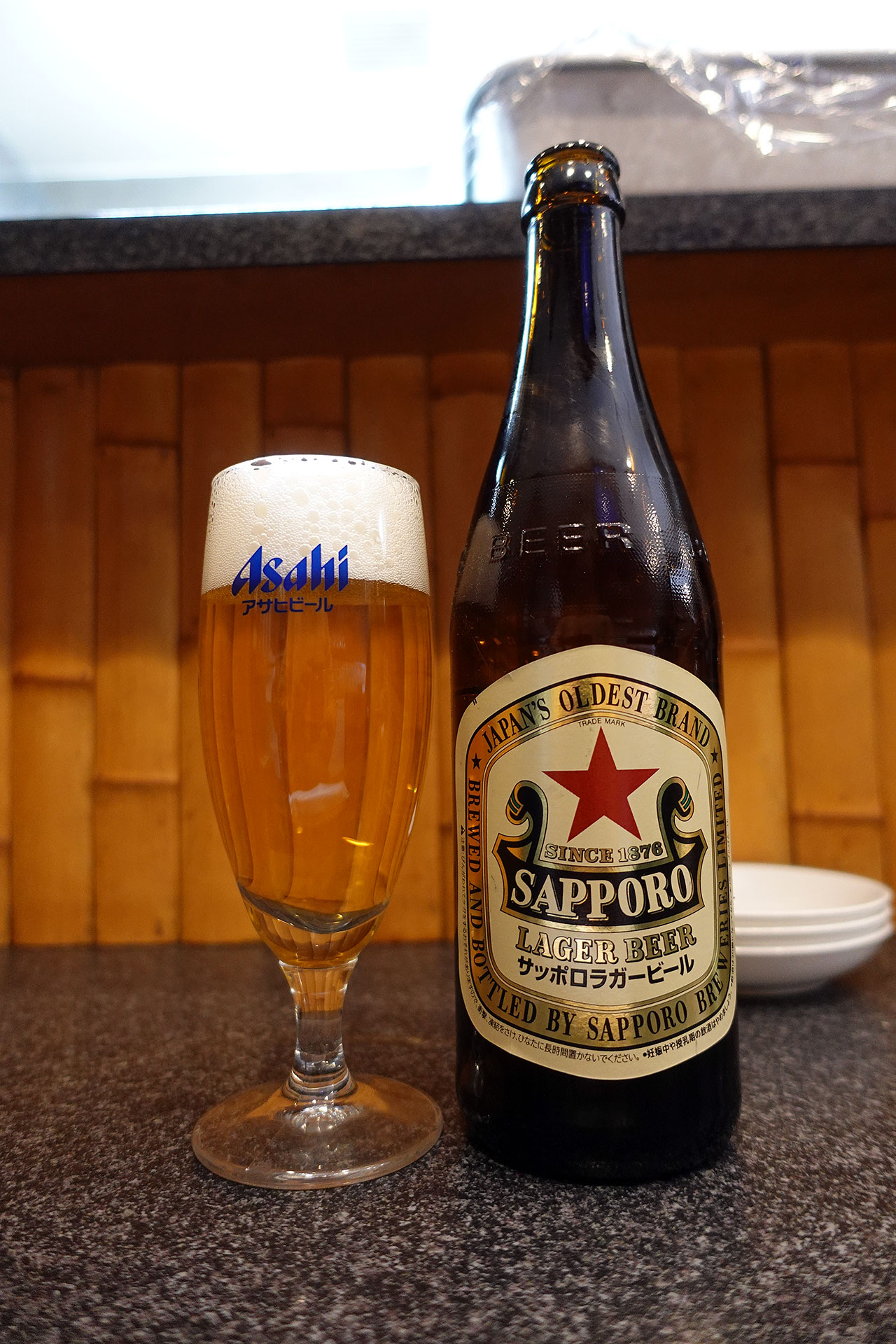 料理が出来るまで「サッポロラガー赤星(中瓶)¥750」をちびちびと。