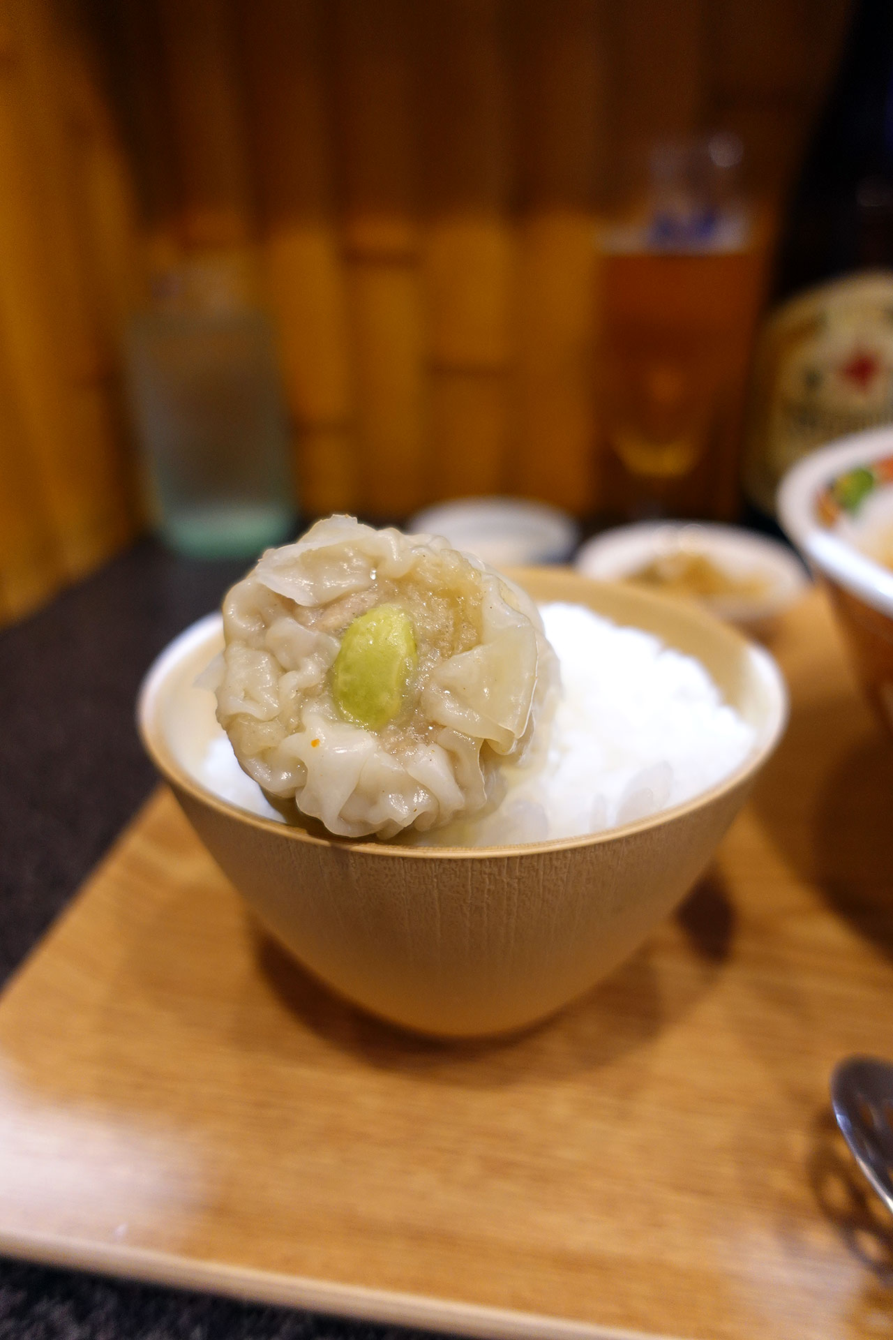 せいろ蒸しのふわふわ焼売。せっかくなのでオンザライス。