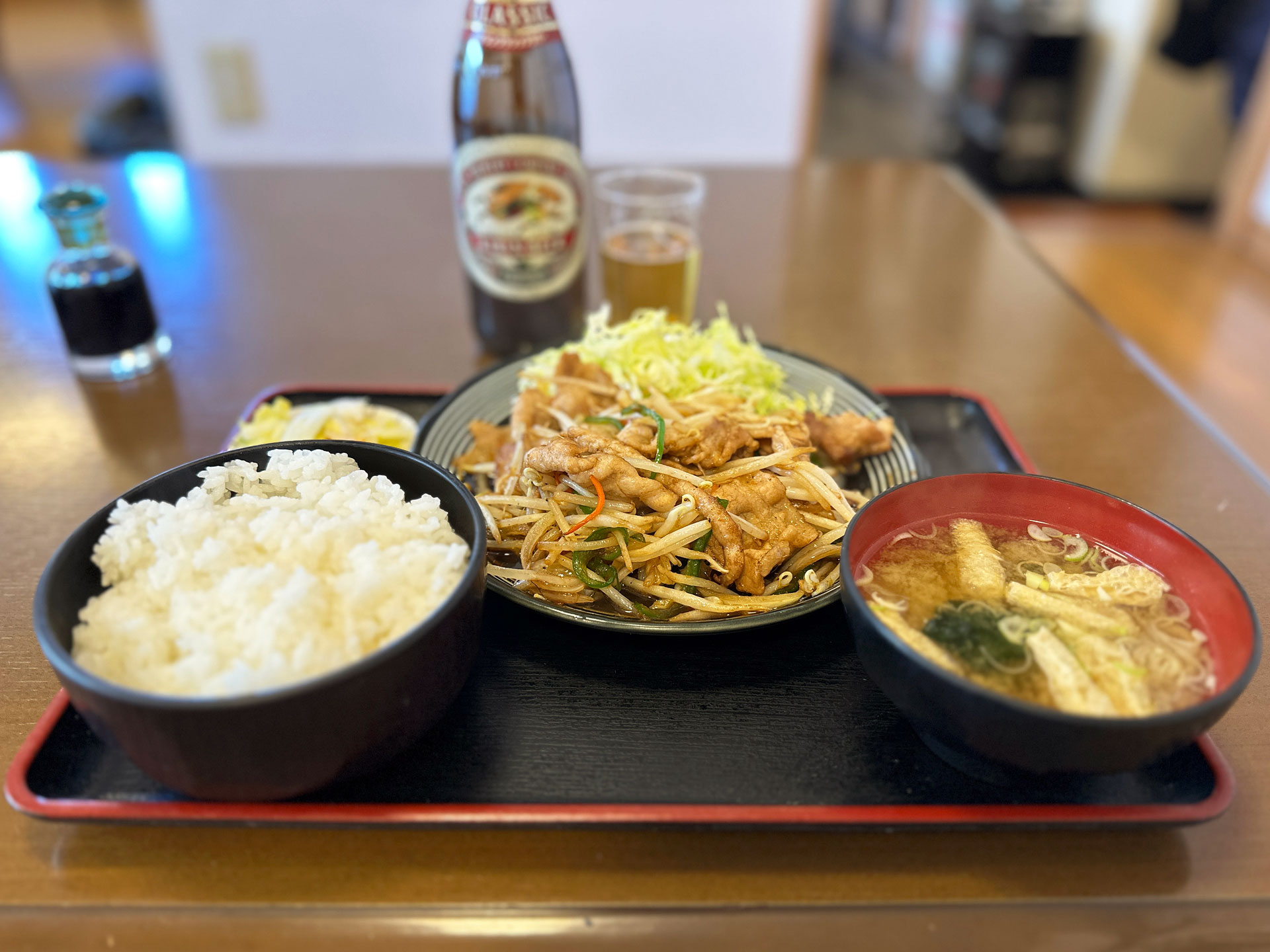 サクッと定食を食べ帰るつもりが予定変更。休日だもの「瓶ビール」。