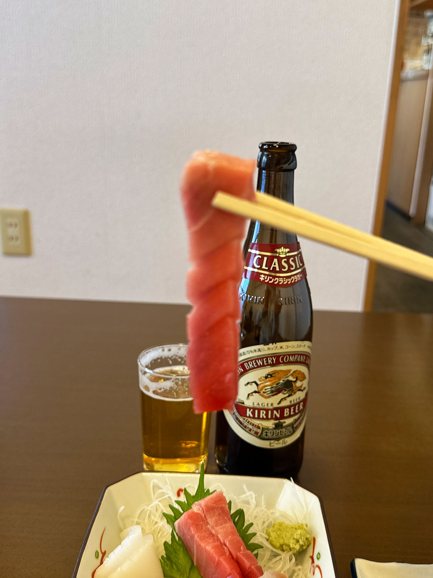 瓶ビール2本に刺身と定食。食べてのんで¥3000でお釣りがあるんだぜ。。