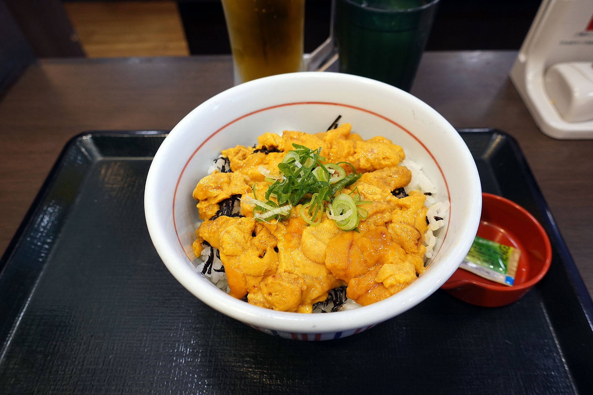 着丼と同時にいい香り「なか卯のウニ丼(大盛り)¥1870」。逆パケ写とは言わんけど写真以上にウニマシマシ。
