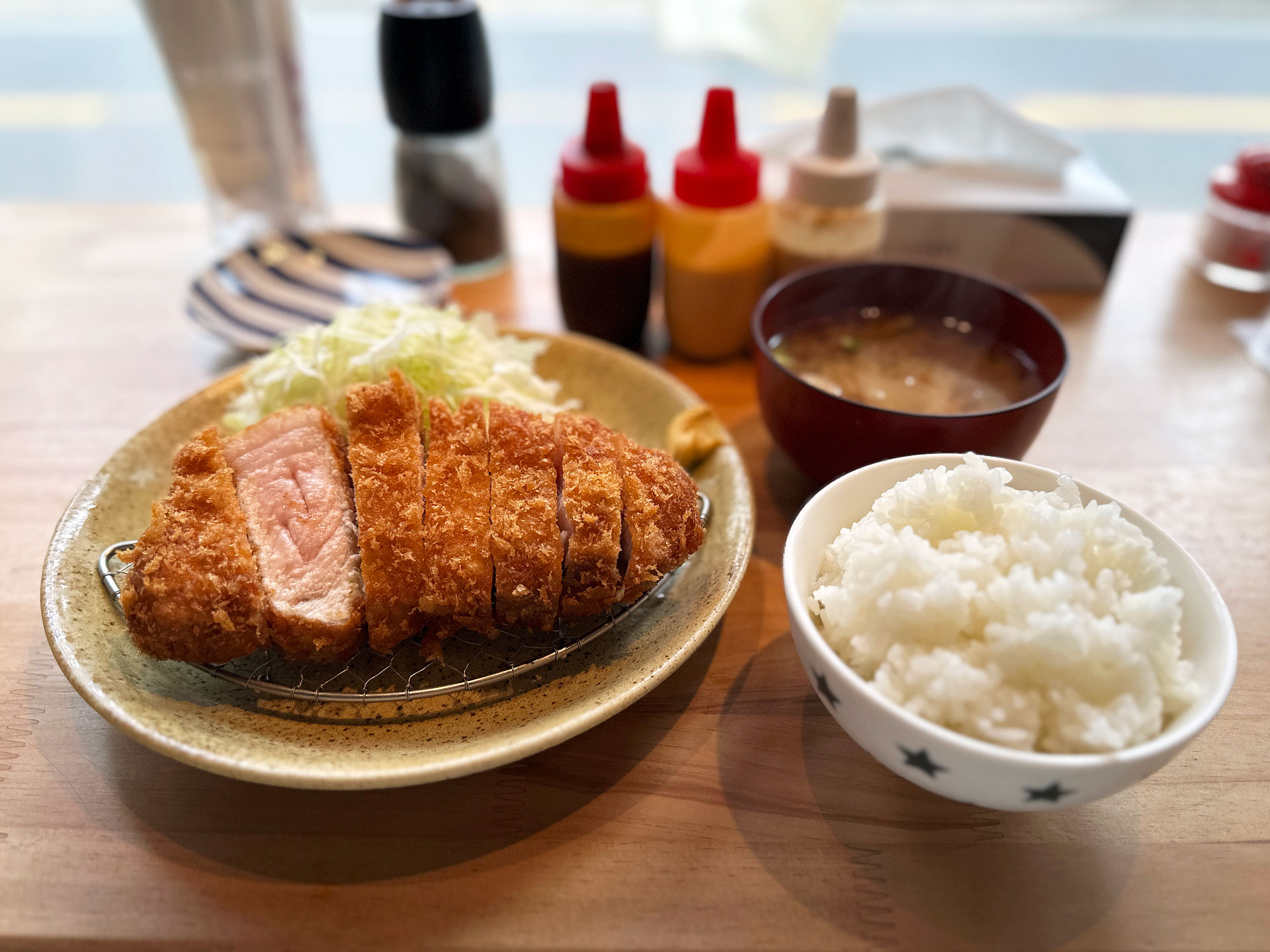 ぶ厚いロースに濃厚ソース。濃味の豚汁もgood。