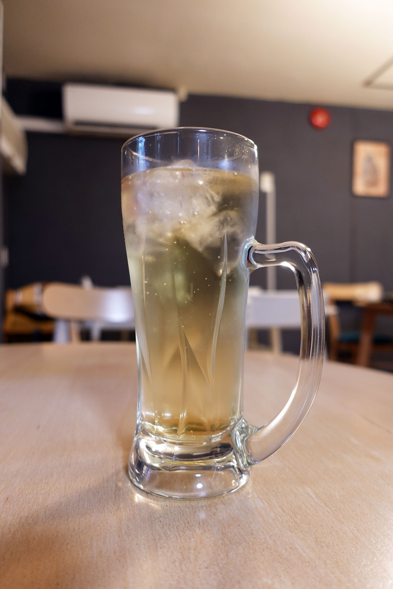 スリランカのお酒「アラック(ソーダ割り)¥690」で乾杯。ほのかに甘い香りのスッキリとしたのみ口。