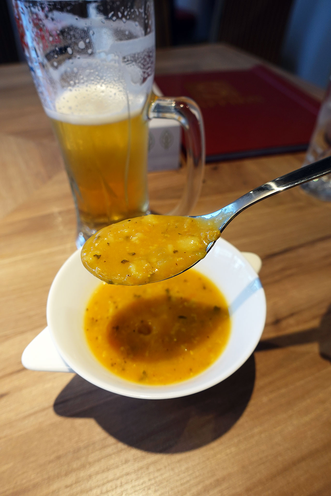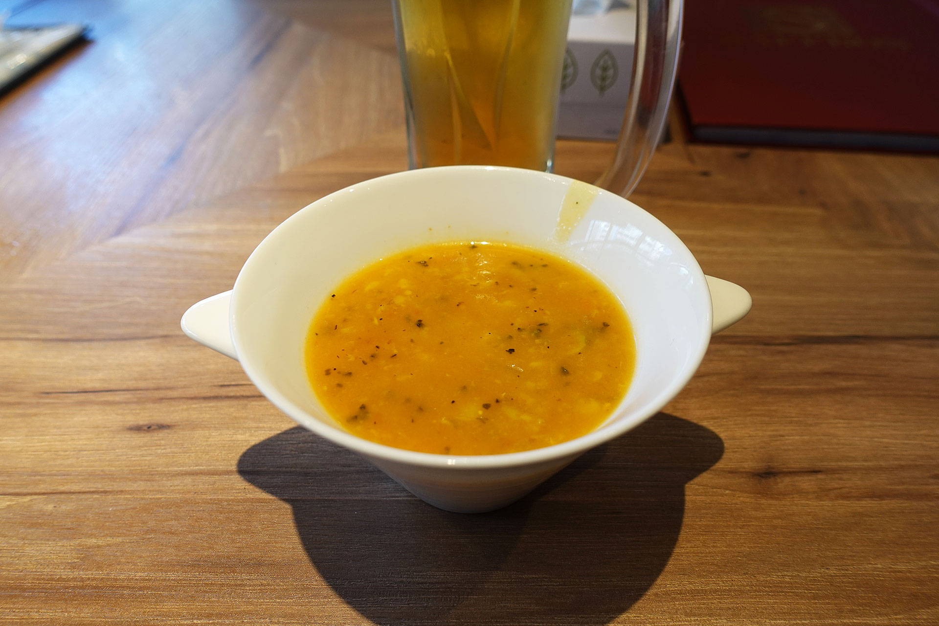 ほんのり酸味の効くとろみのある優しい味のスープ。好みだ。