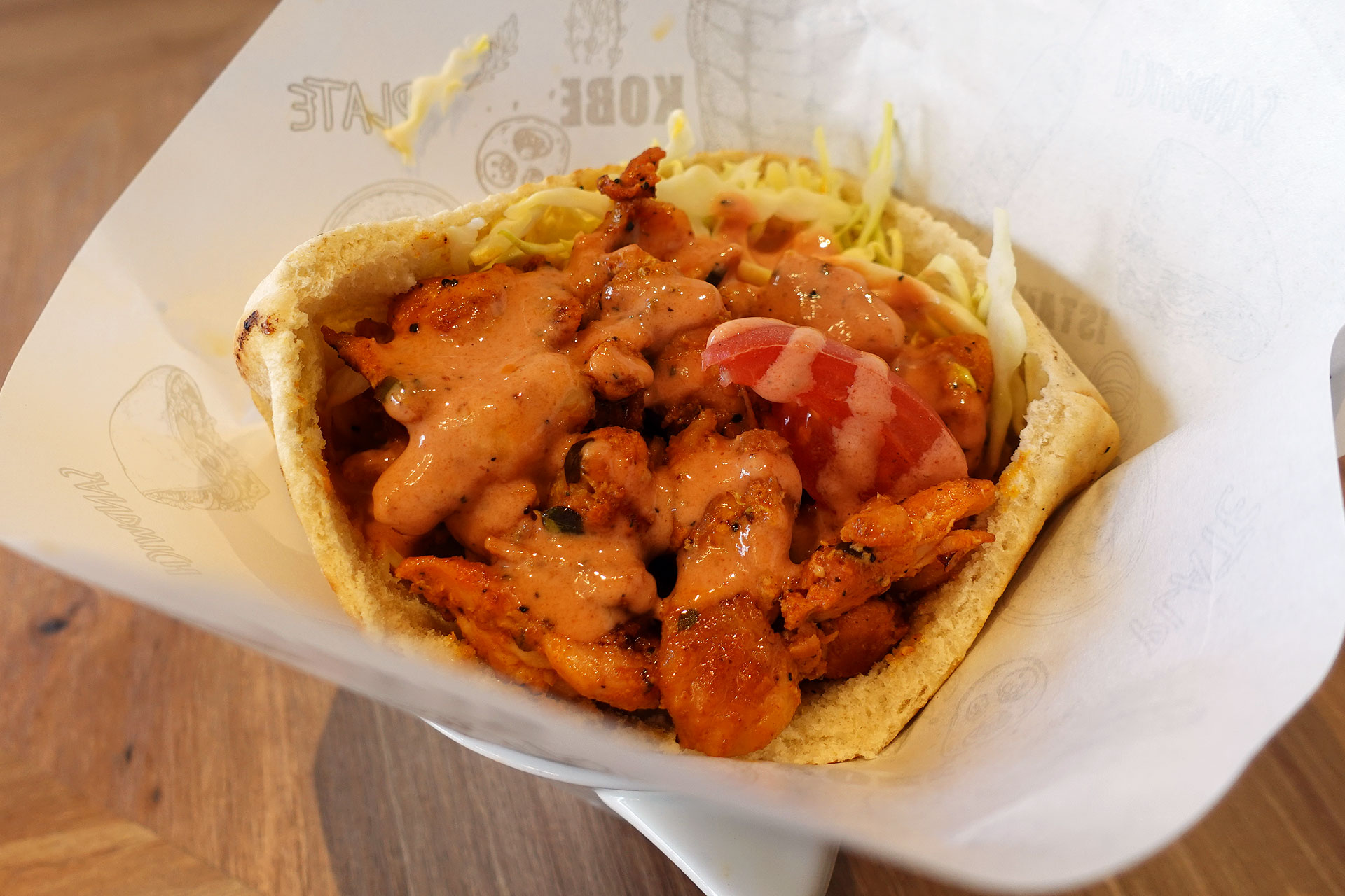 パリッっと焼かれたチキンが山盛り「ドネル・サンド(チキン)¥700」。