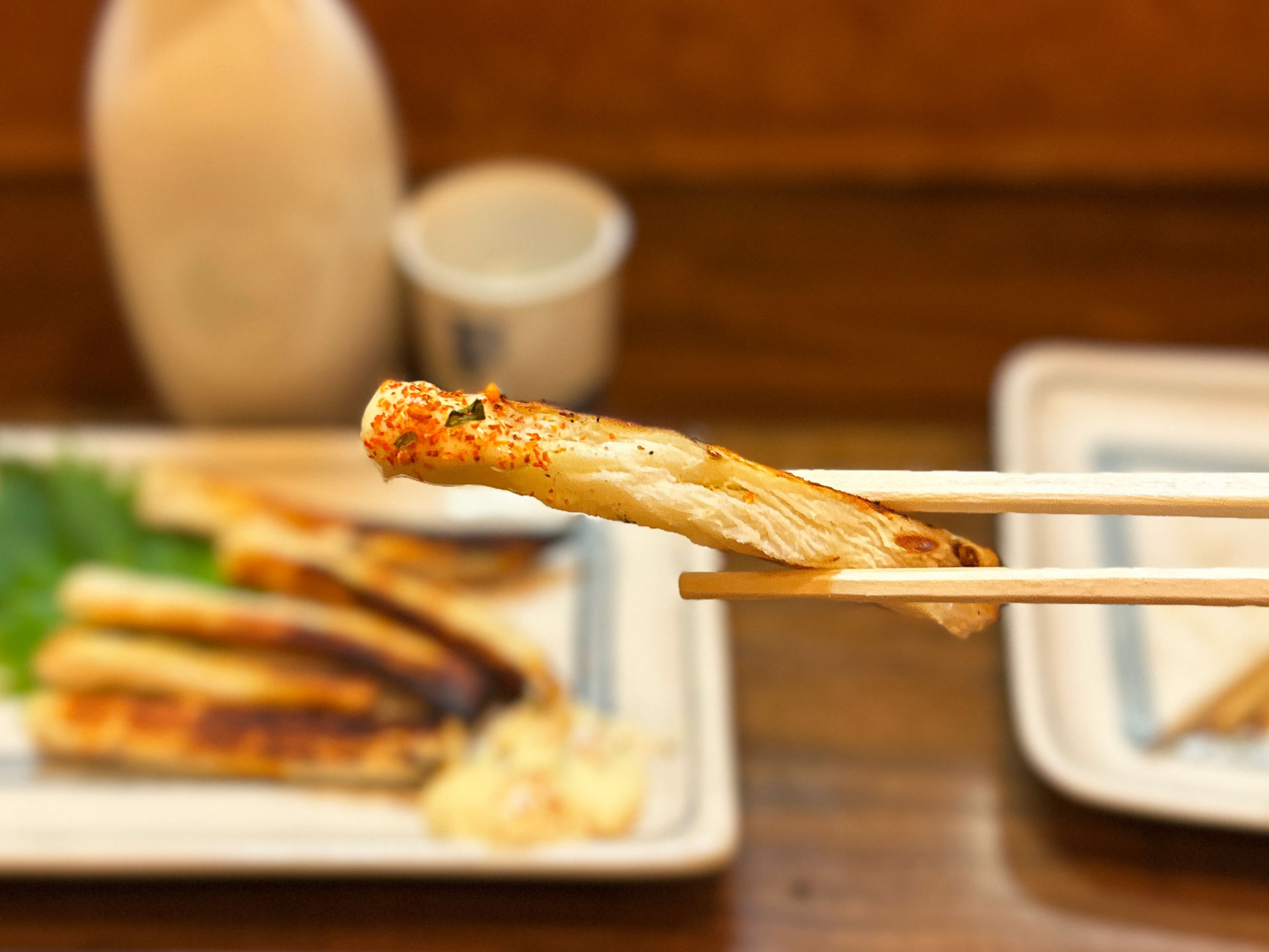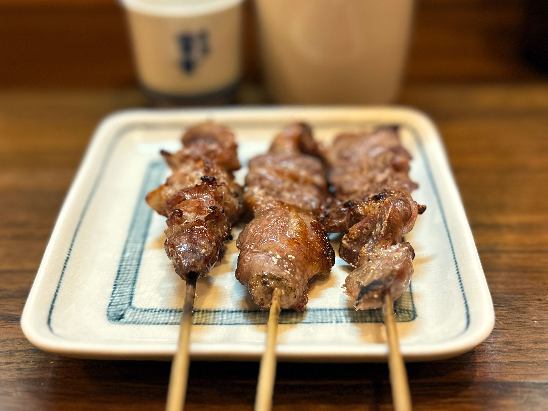 「熱燗¥800」に持ち替え串焼きをば、まずは塩串。