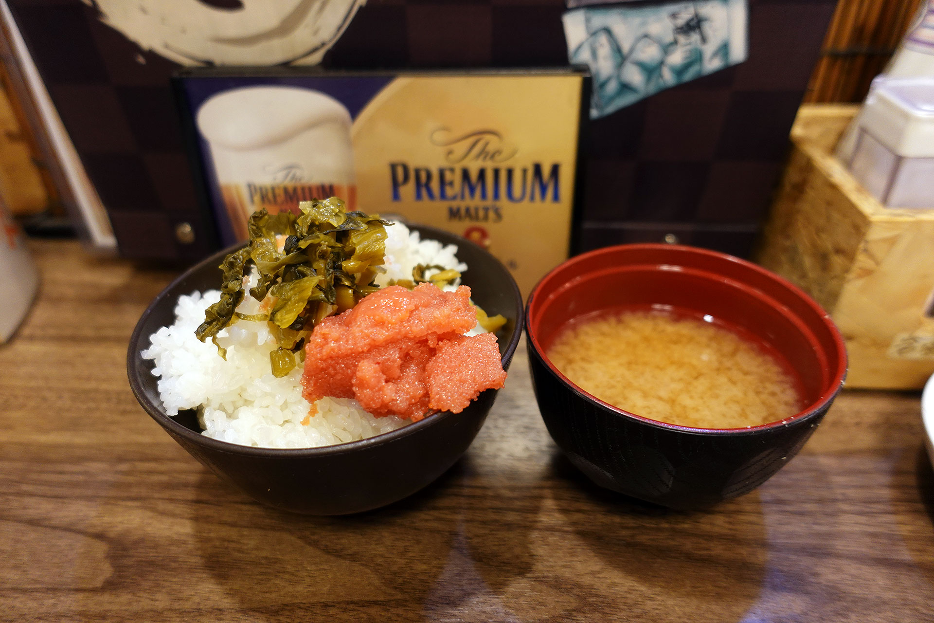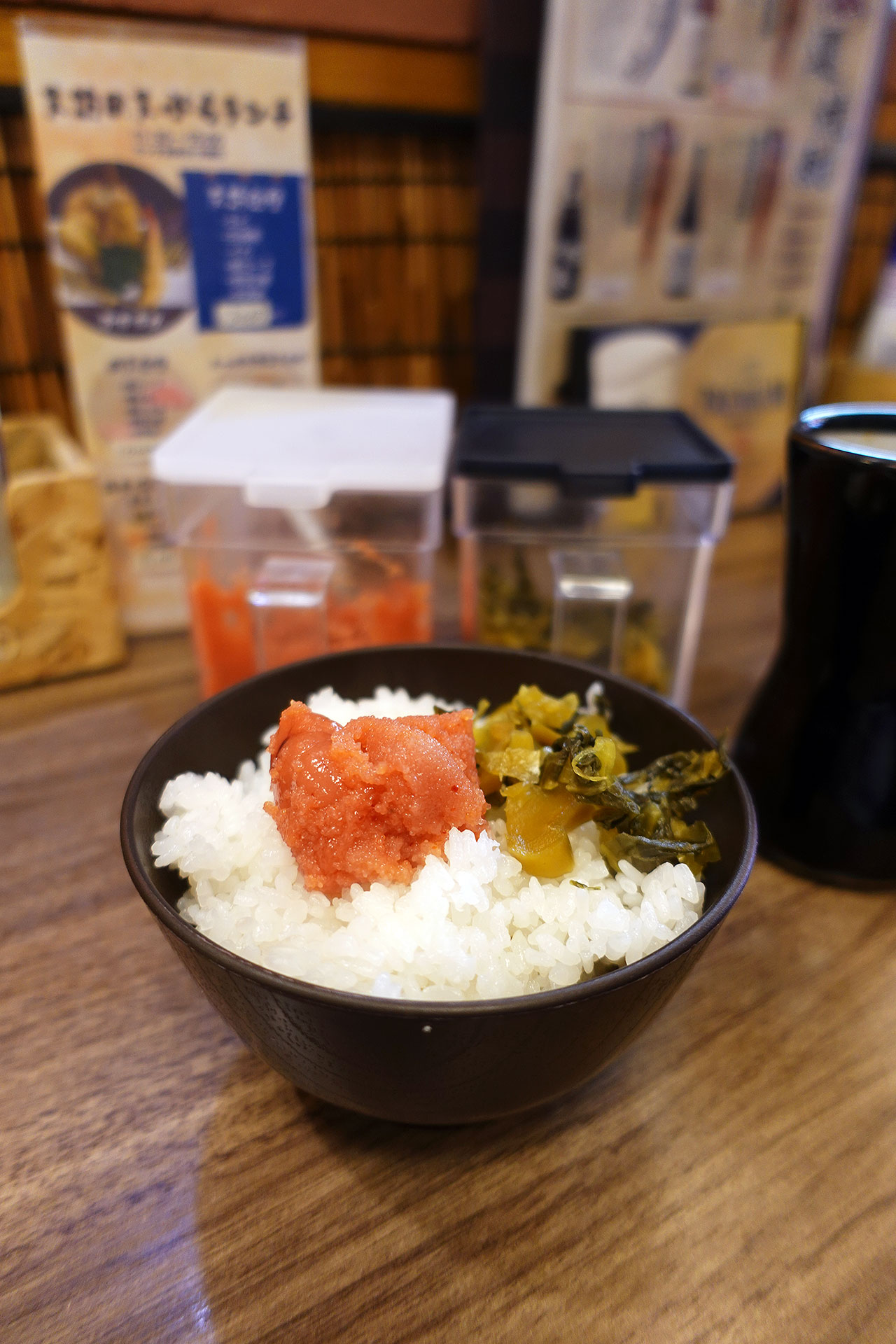 さらに高菜&明太子までおかわりOKで米をぱくぱくやりながら揚がるのを待つ。