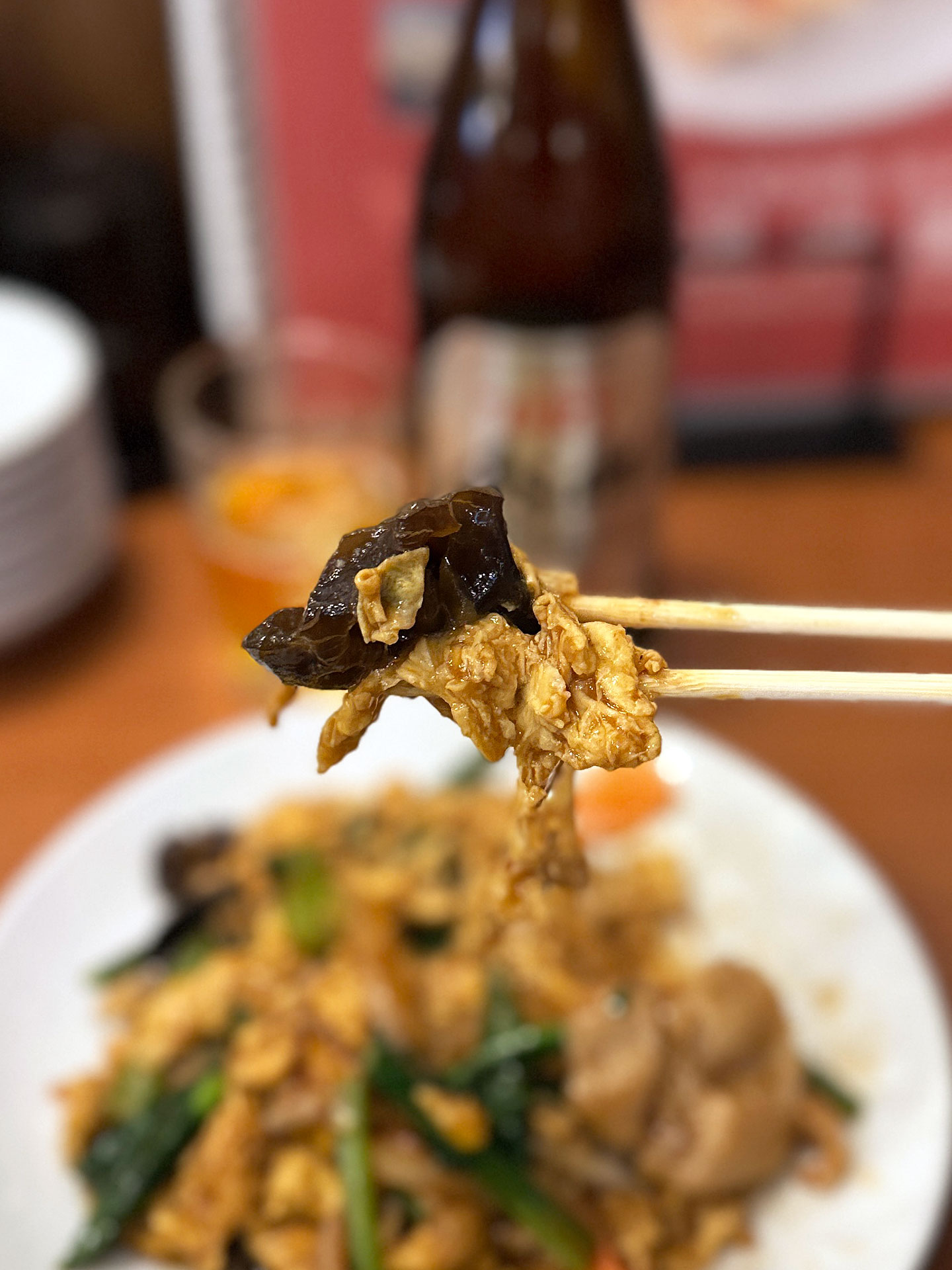 醤香るほの甘。街中華とは別の本格味「豚肉とキクラゲの玉子炒め¥825」。