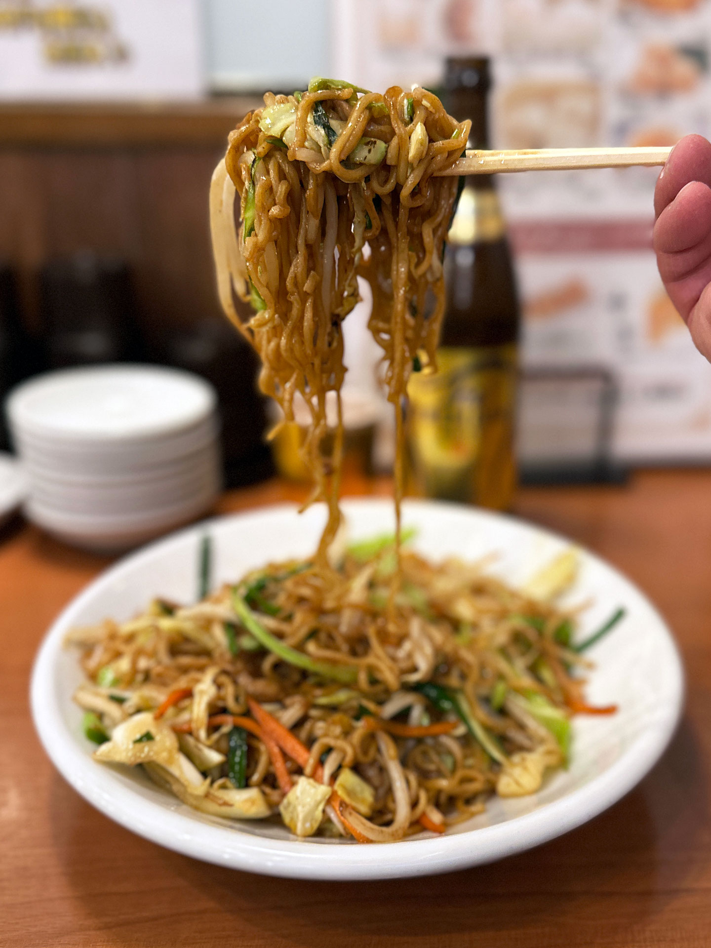 甘さ控えめ野菜たっぷり「上海やきそば¥800」。