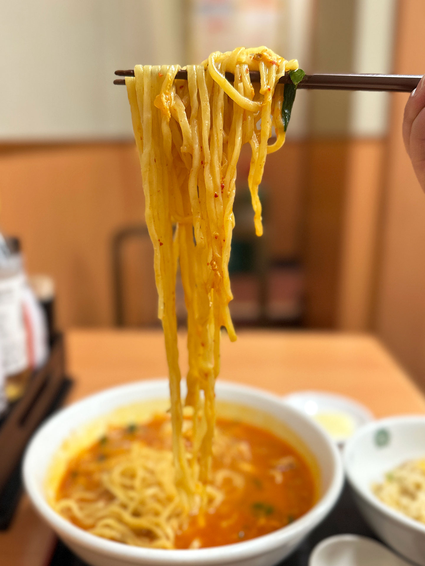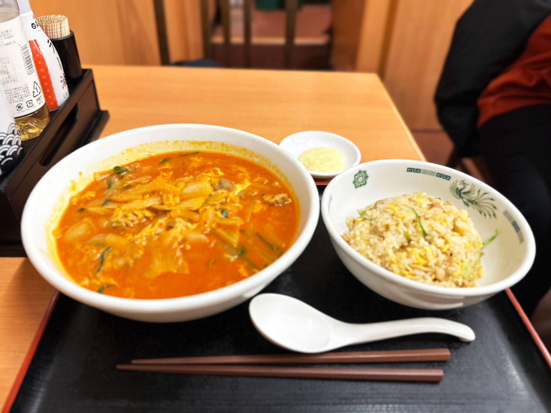 今夜も日高屋の「チゲ味噌ラーメン¥790」におろしにんにくトッピング。